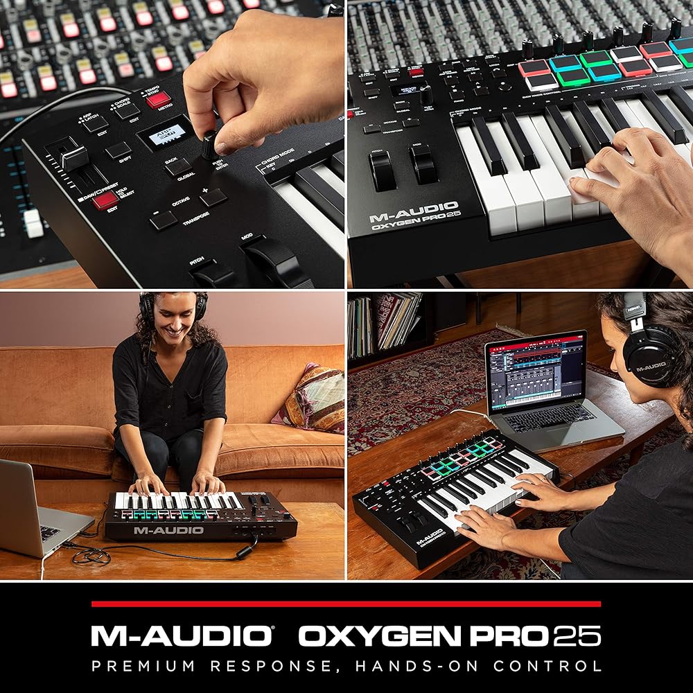 M-Audio's Oxygen Pro Mini is a powerful and portable, 32-key USB powered MIDI controller complete with an arsenal of must-have production tools to streamline your creative process. It doesn't matter if you want to create music on the go or in the studio, the M-Audio Oxygen Pro series is perfectly flexible for any workflow.
