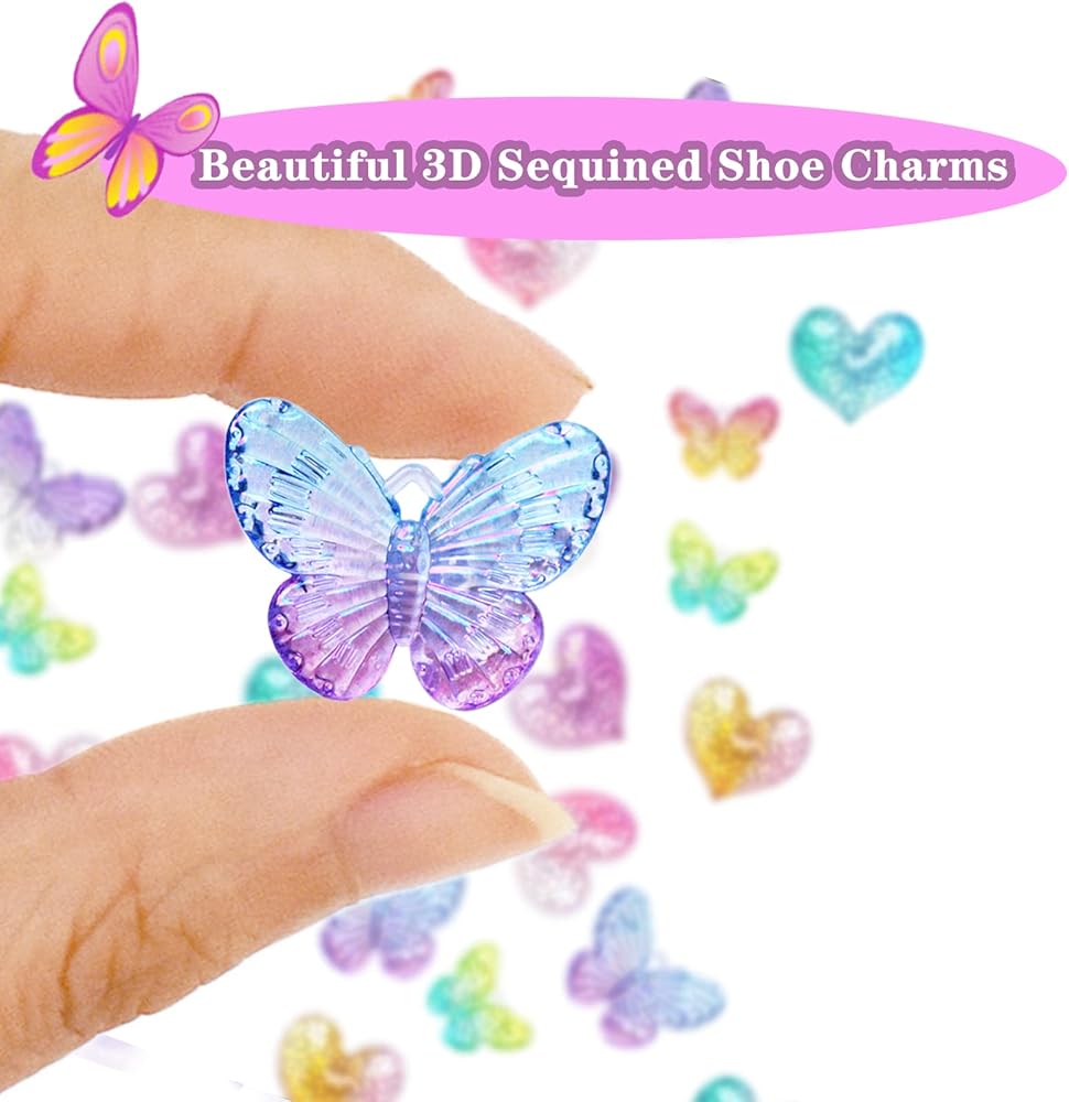 ✨【Shoe Charms for Girls / Women:】Summer is coming, the dreamy glitter style shoe charms will be loved by girls. Each set has 8pcs cute charms for girls. It will be a shoe charms package you can't miss! Special designer charms bring your shoes to life.