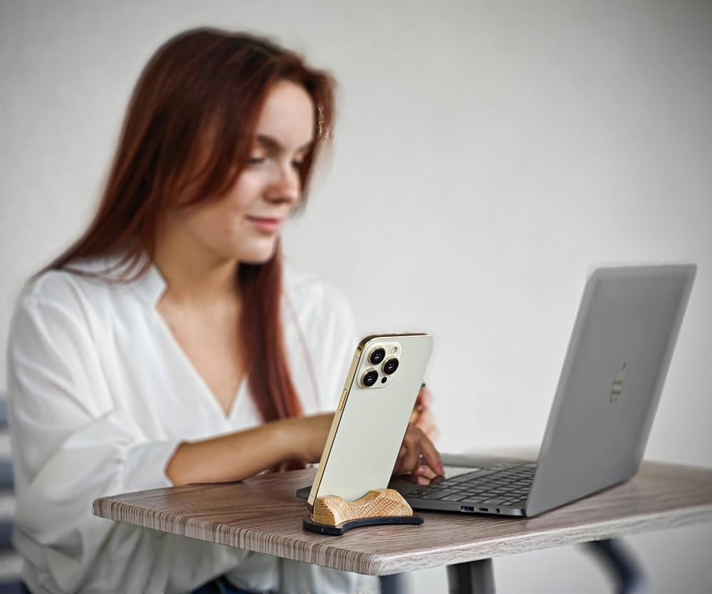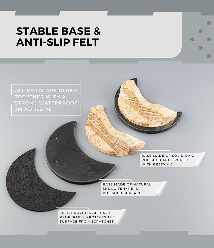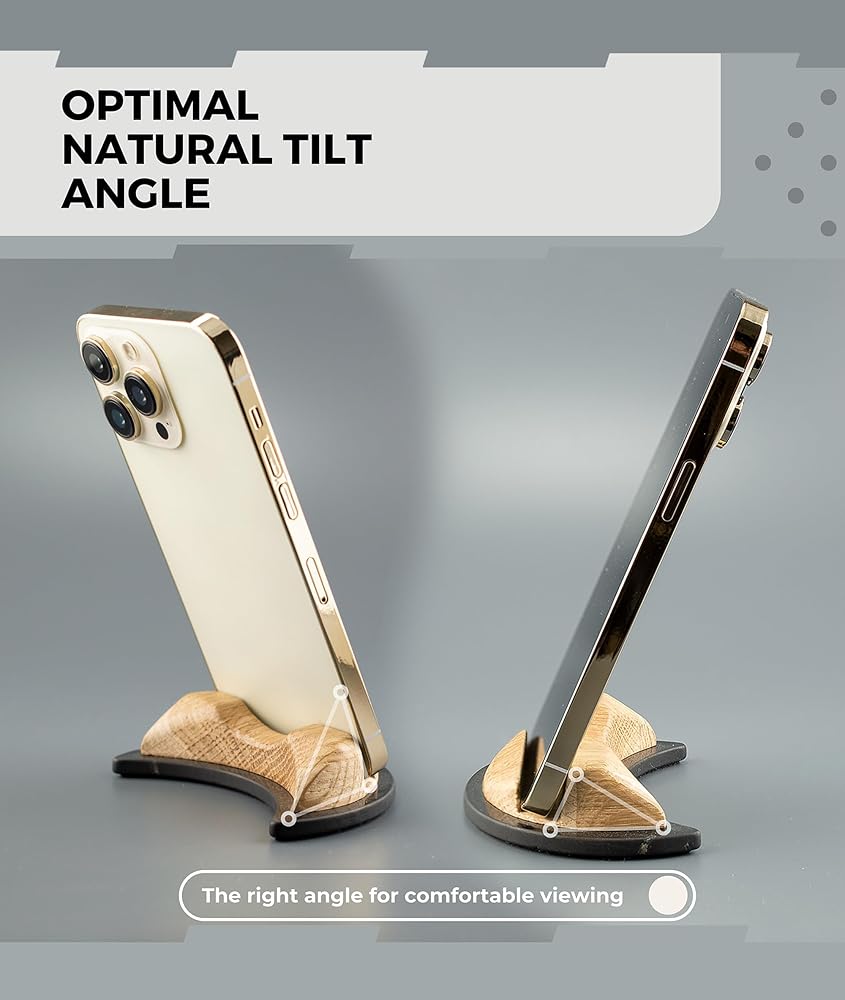 COMFORTABLE USE: This simple but beautiful wooden stand is made of shungite in the form of a crescent moon and oak. Due to its great design, the phone stand holds your device securely, which makes it perfect for hands-free conversations! You can use it to stand your smartphone or tablet on a desk, table or nightstand. The stand also features a felt base, which ensures its anti-slip properties while keeping the device at the right angle for comfortable viewing.