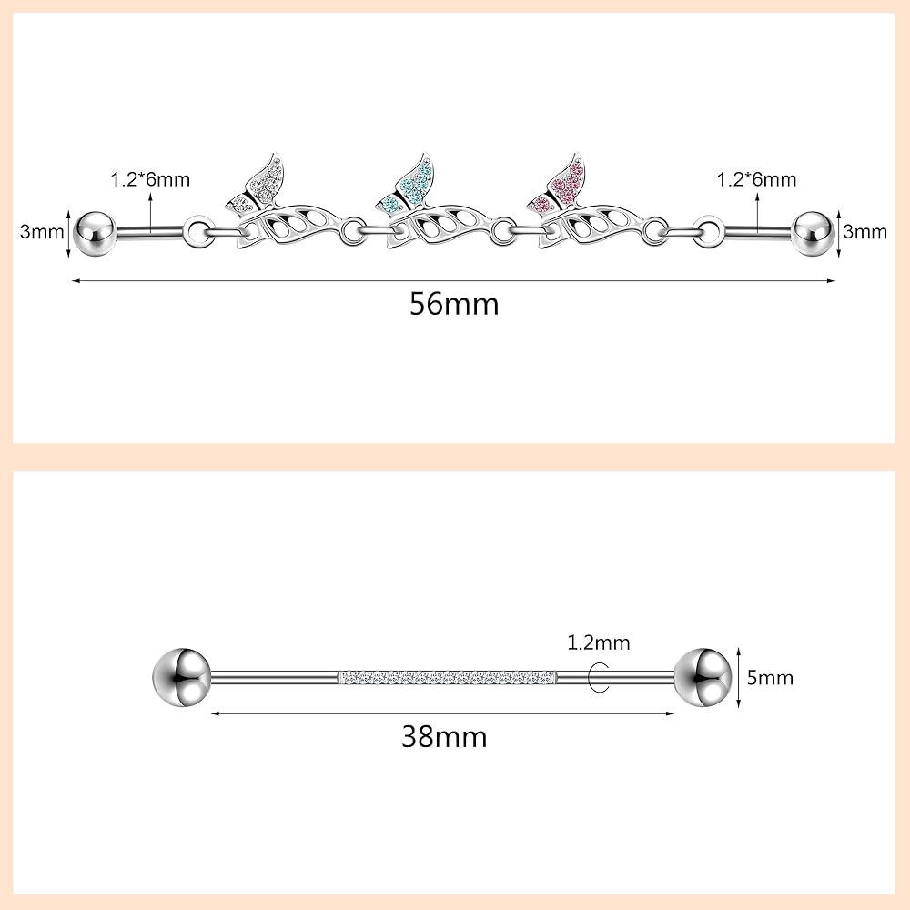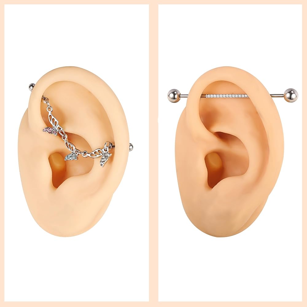 SIZE: gauge size: 16G(1.2mm), industrial chain length: 38mm/40mm. The right length for your ears. these silver industrial piercing jewelry suitable for women and men.