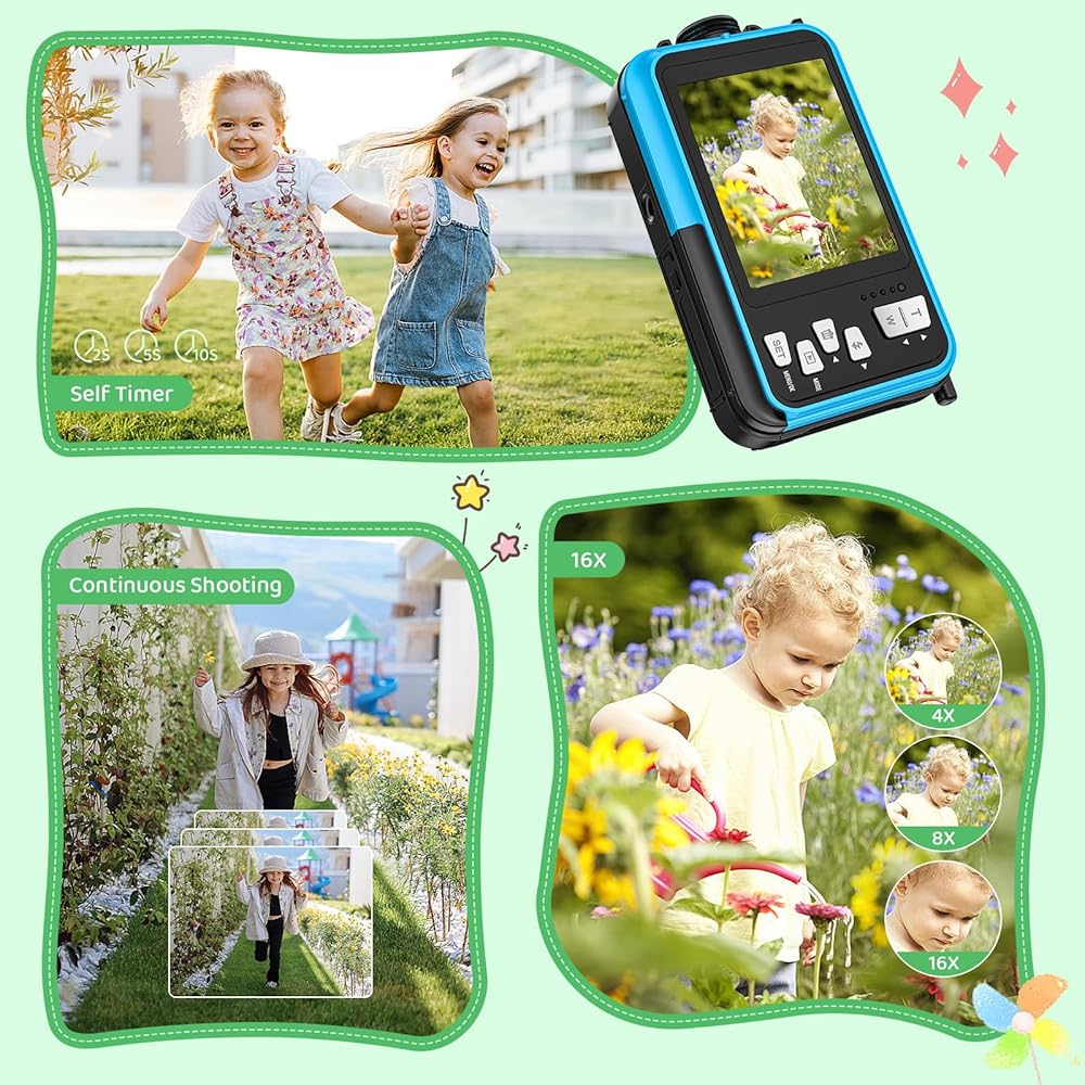 مقاومة للماء بمقدار 3 أمتار/10 أقدام: تدعم الكاميرا تحت الماء 3 أمتار من المعدن العاري المقاوم للماء، وقد خضع المنتج لاختبارات صارمة لأداء محكم ومقاوم للماء، ويمكنك استكشاف عالم تحت الماء دون قلق. يمكن للأطفال بسهولة تسجيل الجمال تحت الماء.