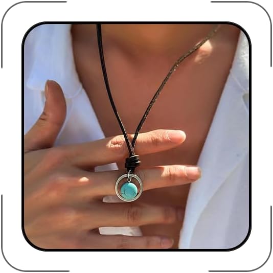 Boho Necklace Leather Necklace for Women,Bohemian Brown Suede Leather Necklaces Turquoise Suede Choker Necklace Boho Wrap Necklaces Jewelry
