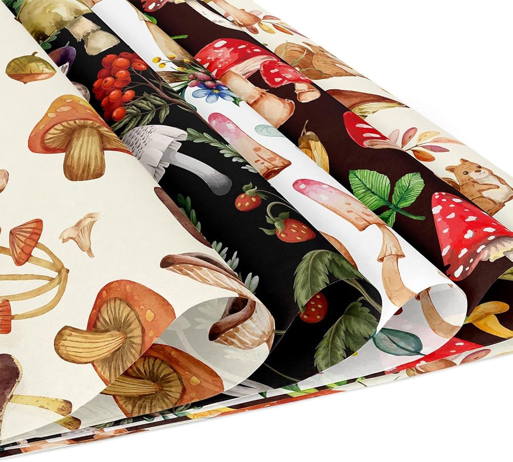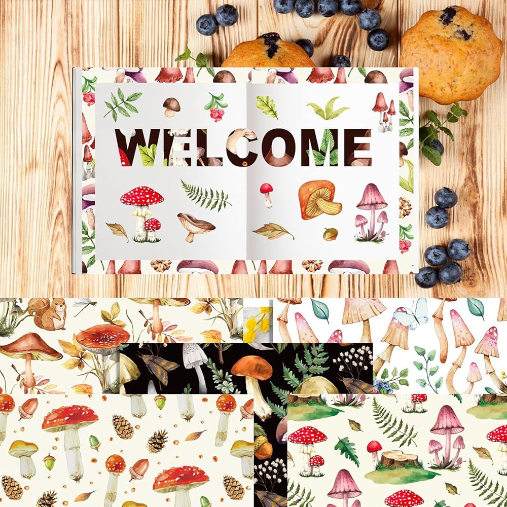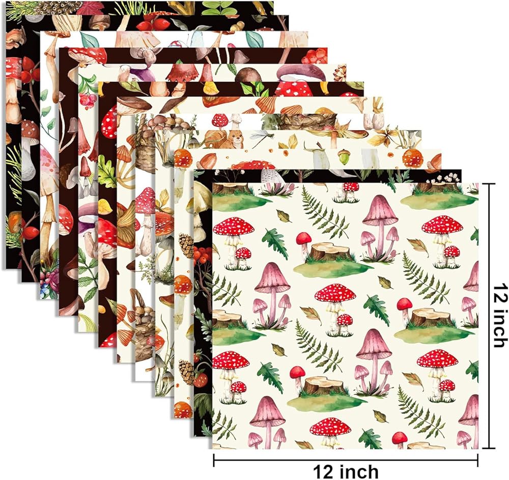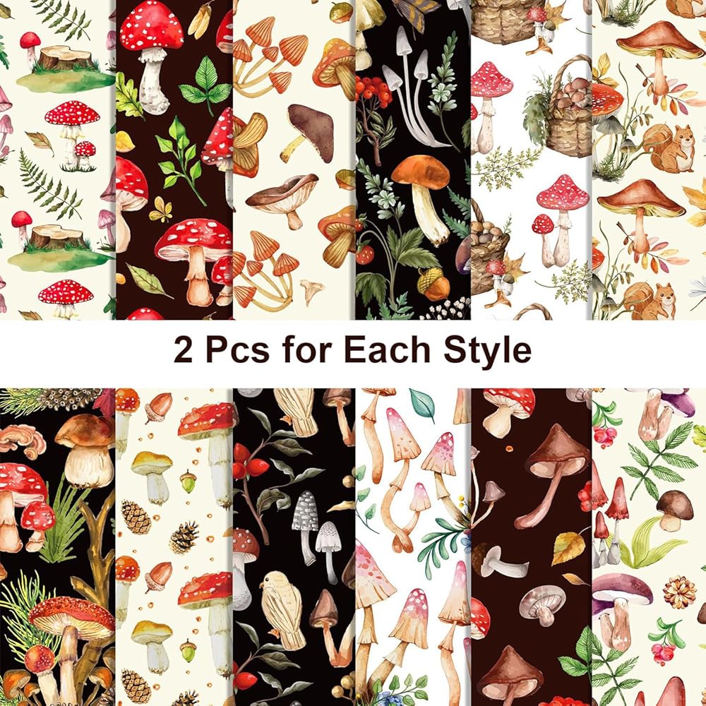 1.Package included: 24 pcs 12 "x 12" mushroom pattern paper with 12 different designs, each style with 2 pieces, which is enough to satisfy your needs. You can share DIY with friends.