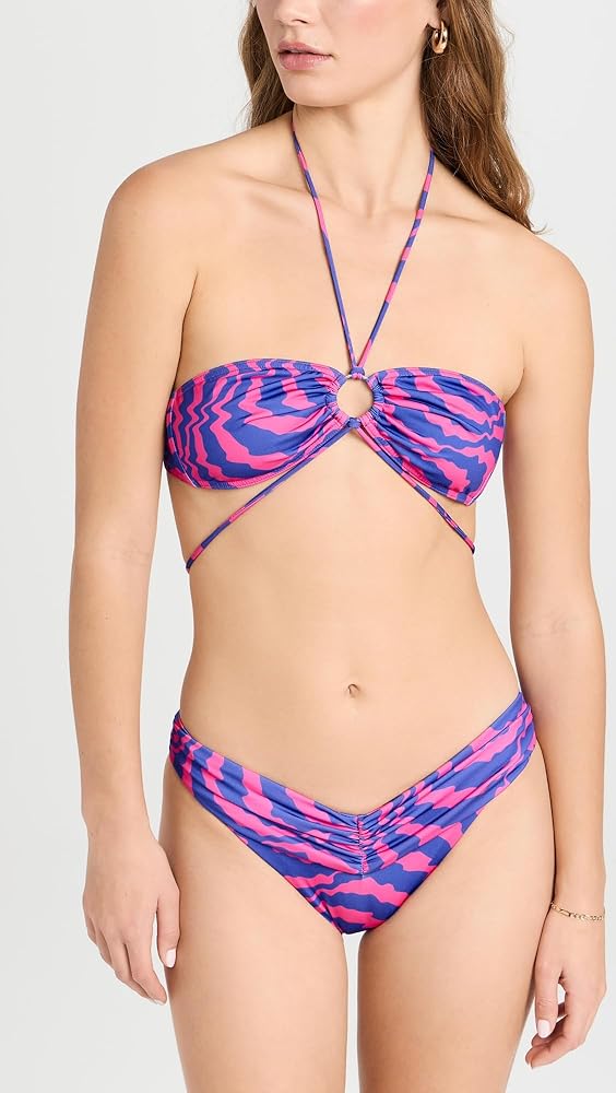 Wavy pattern , Front and back ruching , Gold-tone logo emblem