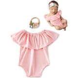 baby photography lace bodysuit Tutu skirt colors are Pink. Suitable for 0-3 months newborn baby girls.