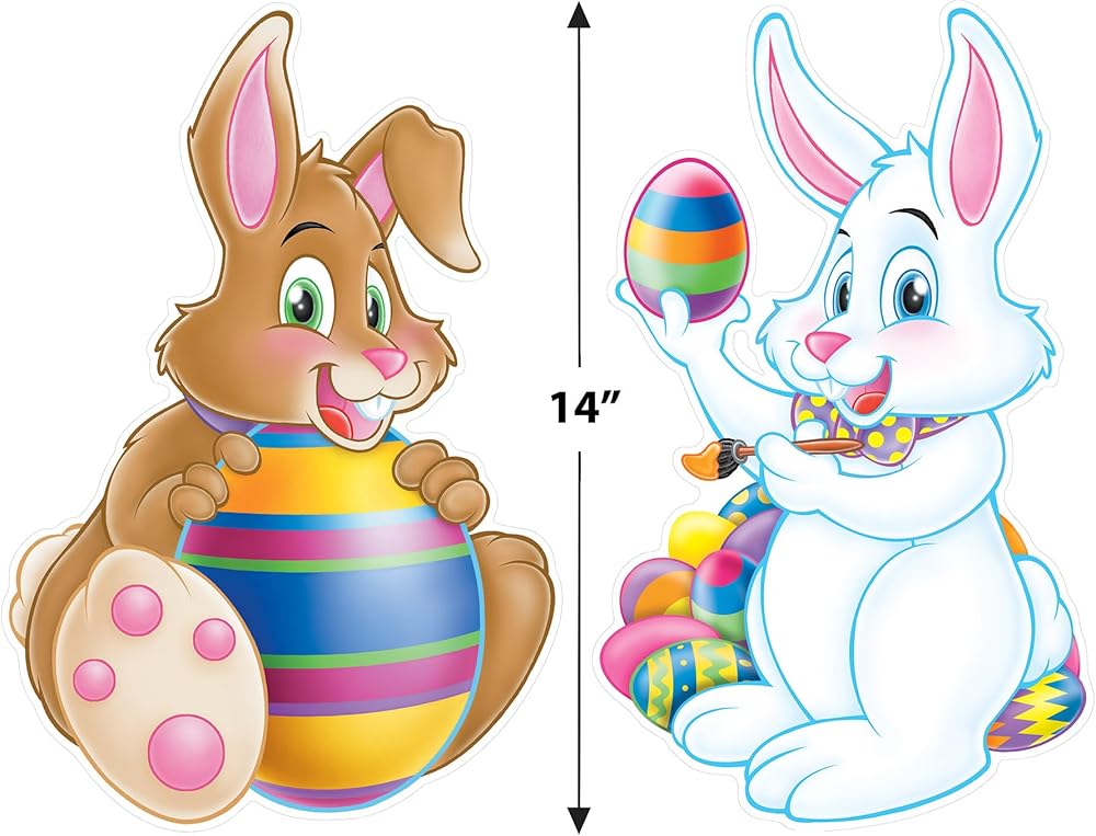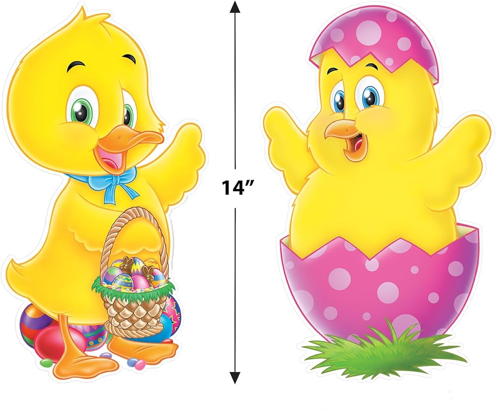 CHARMING EASTER DISPLAY: Standing 14 inches tall, these delightful Easter cutouts make a statement in any seasonal display, ensuring they catch the eye and add a charming touch to your themed decorations. Printed on both sides of cardstock paper.