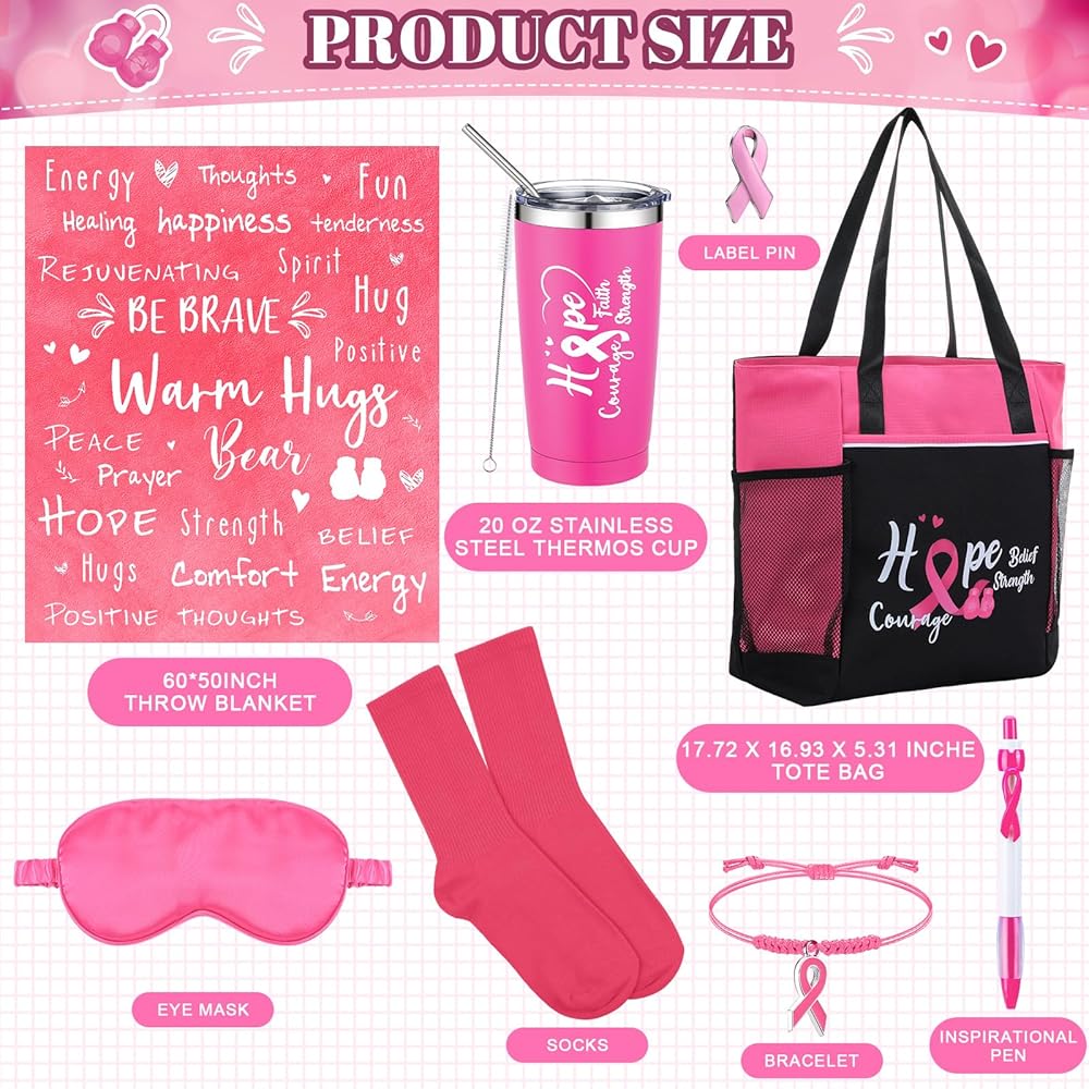The ideal breast cancer gift set to touch the hearts of breast cancer survivor deeply. Each item in the care package echoes the unwavering support of loved ones. It provides recipients with tangible tokens of encouragement, expressing love and solidarity, and serving as a constant reminder that they are not alone in their fight.