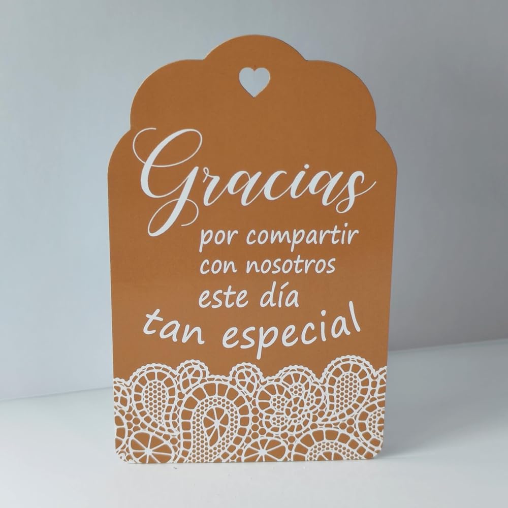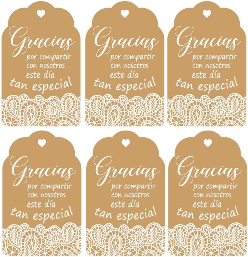 Handra 50pcs Spanish Wedding Favor Tags, Thank You Tags, etiqueta de Regalo Gracias por compartir con nosotros este da tan Especial (Kraft)
