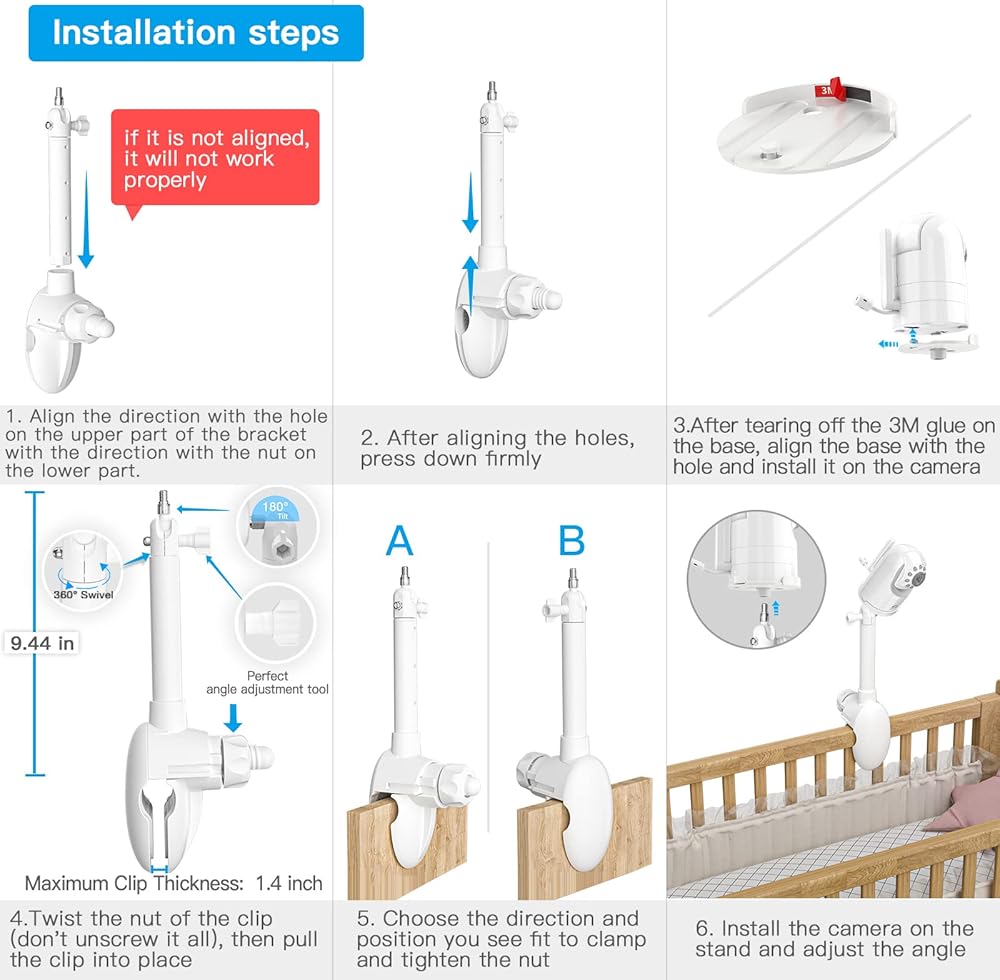 📹 Also for Vtech VM901, Owlet Cam Duo, Arlo baby monitor, Motorola baby monitor and more baby camera with universal 1/4-20 mounting thread(not for owlet cam 2)