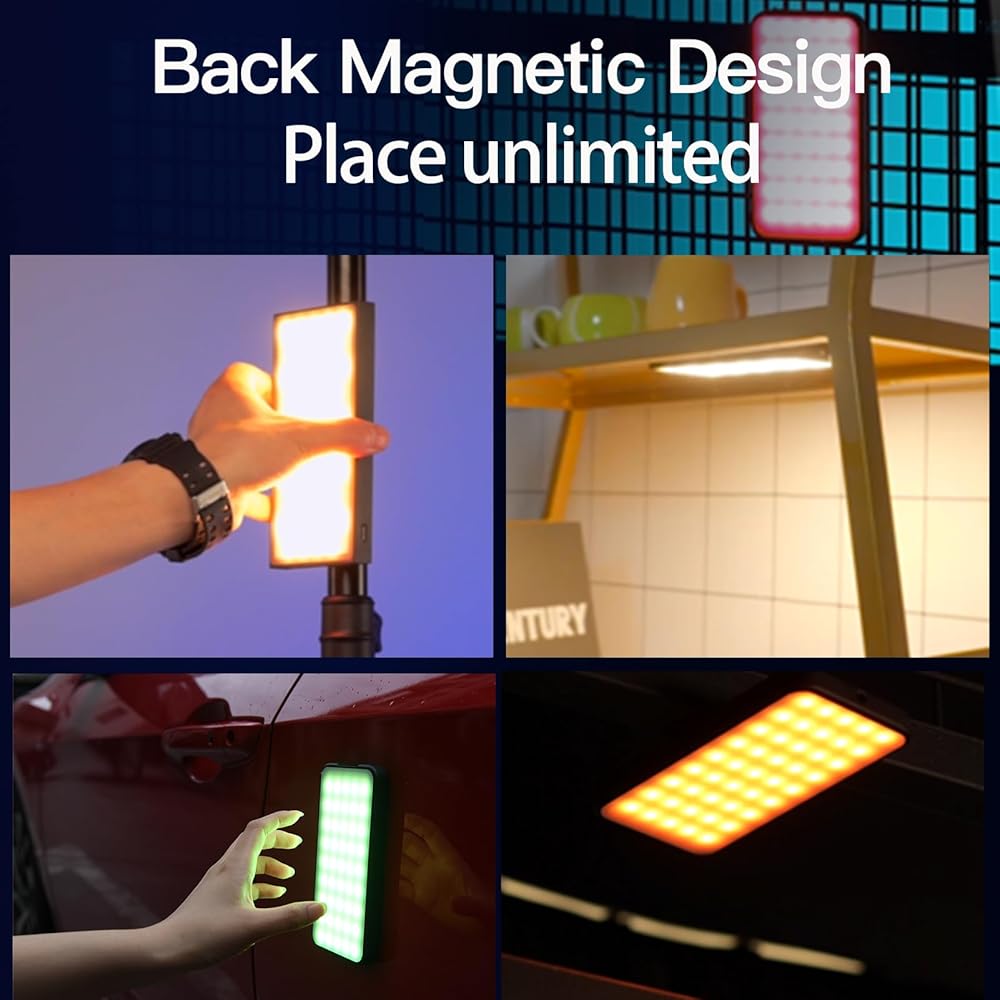 【Magnetic design for flexible bonding】This Portable RGB Camera Light has a magnetic attachment design. You can fix the photography light on top of most of the metal frames, which makes the light distribution more flexible, and shoot the effect you want as you like.