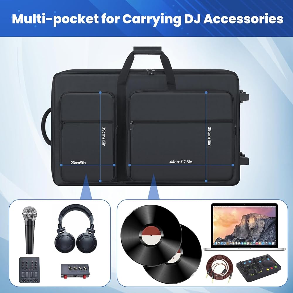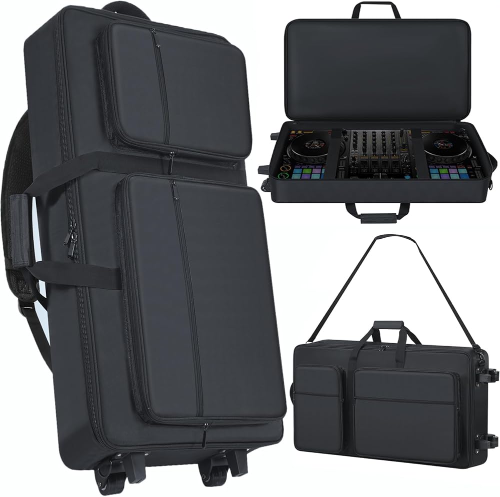 【DJ Roller Case with Multi-pocket】The DJ Case offers multi-pocket for DJ controller and dj accessories. The DJ Carrying Case has 4 pockets to laptop hold adapter cables, earphones, and cords, headphone, cables, phone, keys, etc. The large capacity DJ carrying bag with multiple pockets is suitable for travel, Performing, practicing.