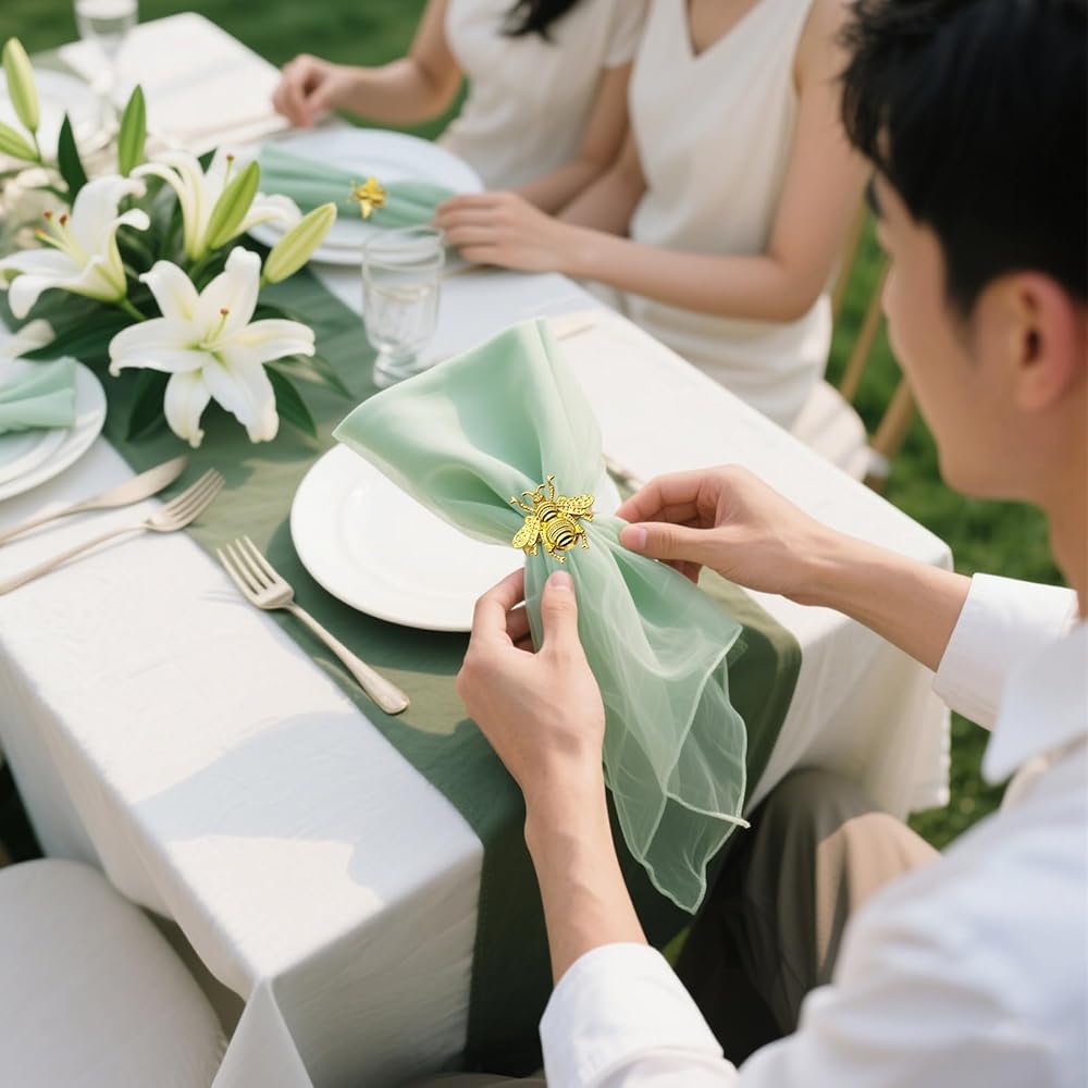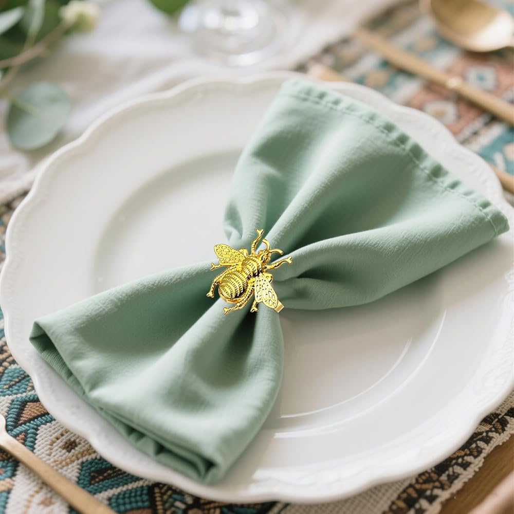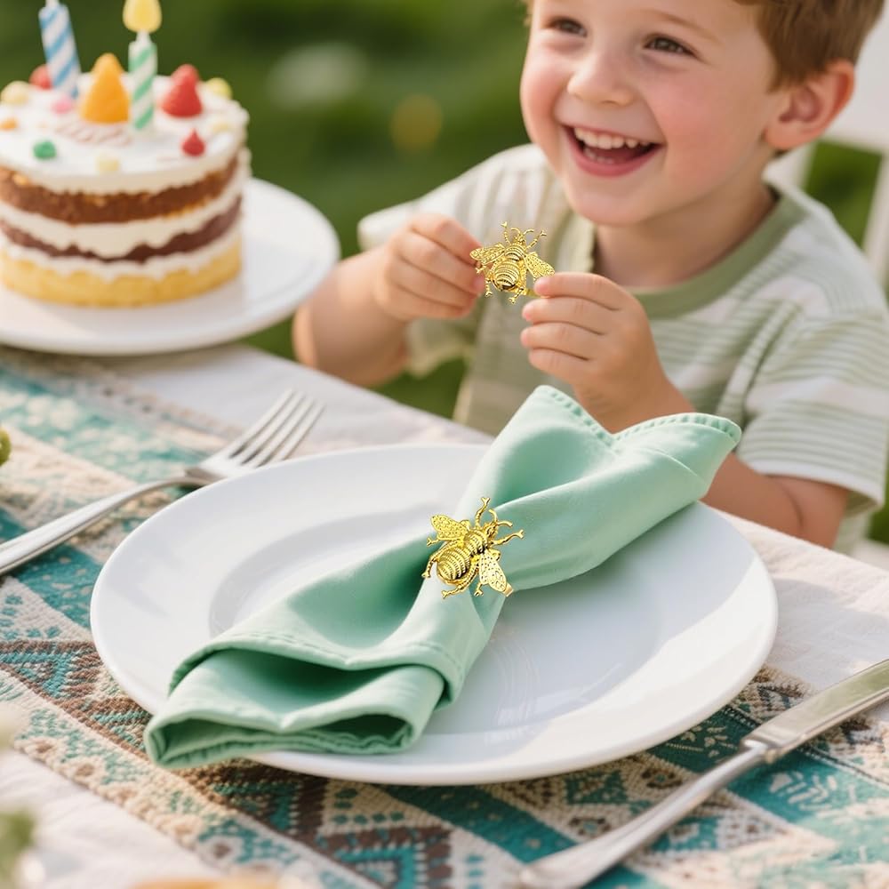 ♥【Wide Range of Scenarios】-Luxury Gold Plating with Cute Bumblebee Design, Metal Napkin Rings are generally placed on the table,It can store the napkin decorate the environment and it's being a delicate decoration for the wedding Easter Christmas Thanksgiving Day Home Kitchen Dinner Table Decor.