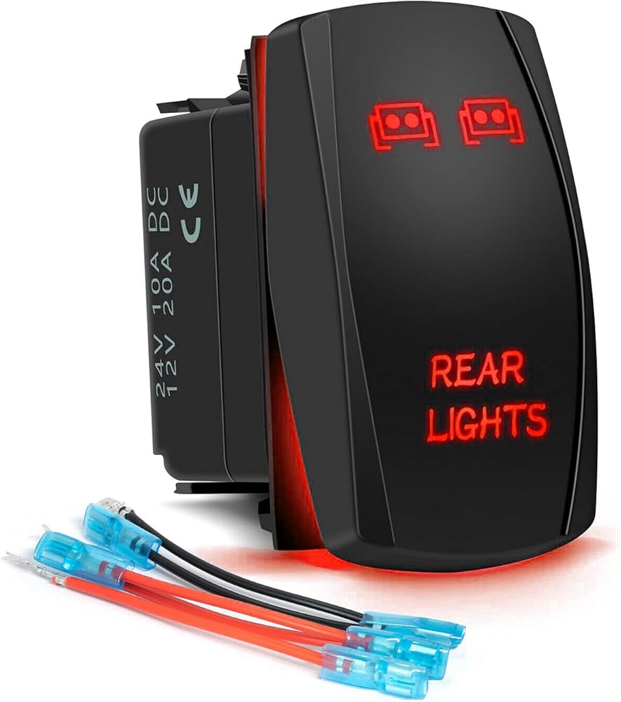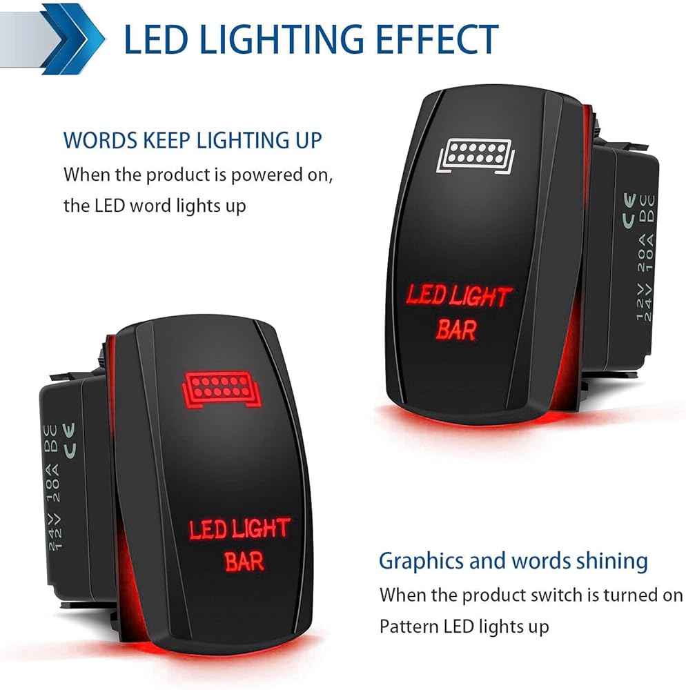 [Wide Application]: Standard 5 Pin switch, rated at DC 12V/20Amp and DC 24V/10Amp, Fits for most car, SUV, ATV, UTV, 4X4, motorcycle, truck, Jeep, Wrangler, boat, yacht and other off-road vehicles.