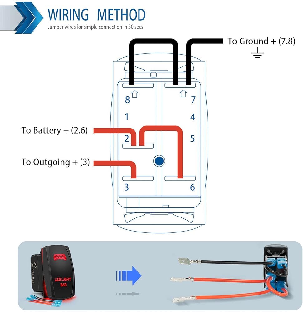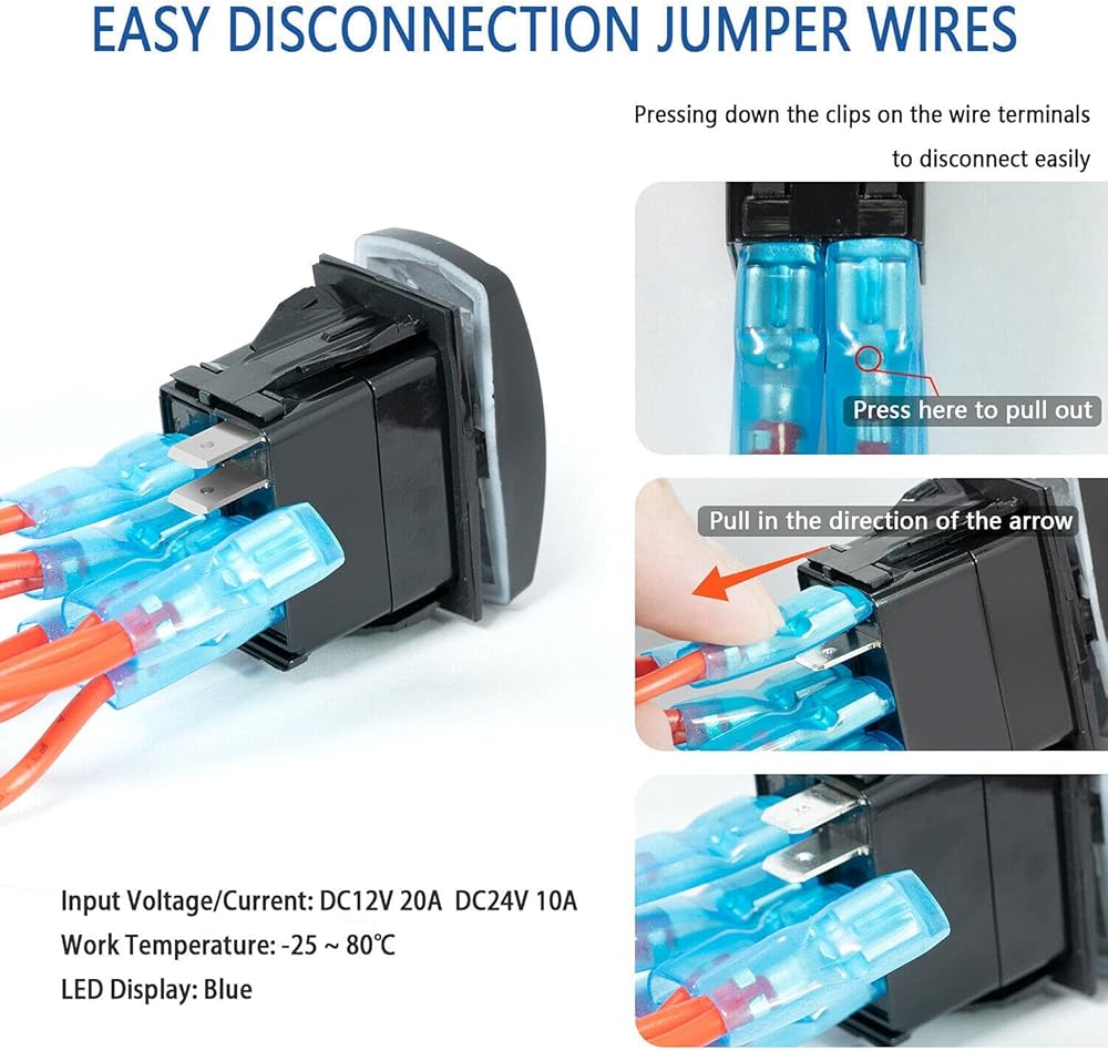 [Package Included]: 1x LED Light Bar Rocker Switch + Rear Lights Rocker Switch; 2x jumper wires set.