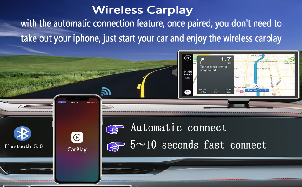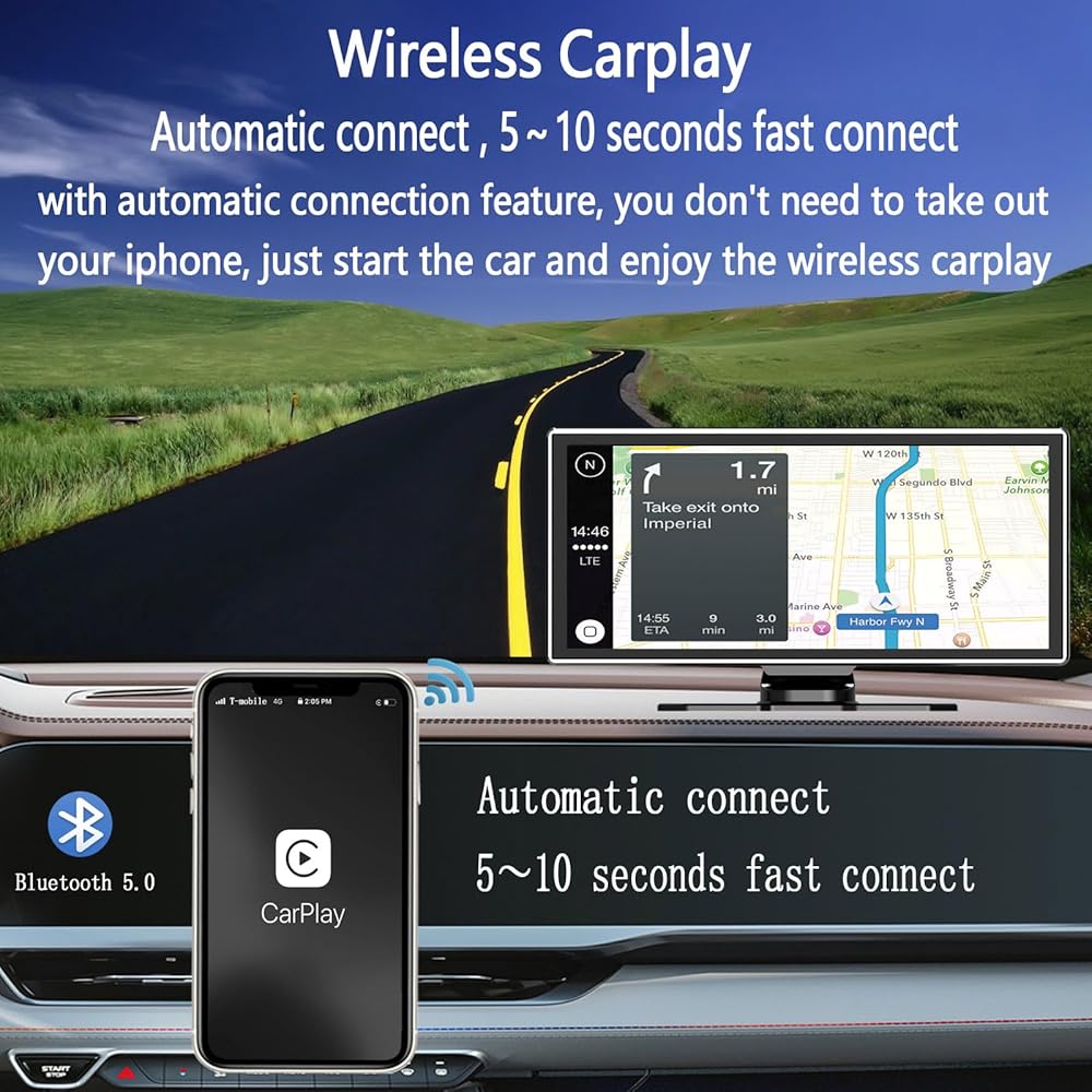 🚗《Apple CarPlay اللاسلكي التلقائي》 شاشة تشغيل السيارة المحمولة هذه للسيارة مدمجة في نظام تشغيل متطور في الوقت الحقيقي مع واي فاي 5G عالي السرعة، الاتصال أسرع وأكثر استقرارًا. مع وظيفة الاتصال التلقائي، لا تحتاج إلى إخراج هاتف iPhone الخاص بك، فقط قم بتشغيل السيارة واستمتع بتشغيل السيارة اللاسلكي