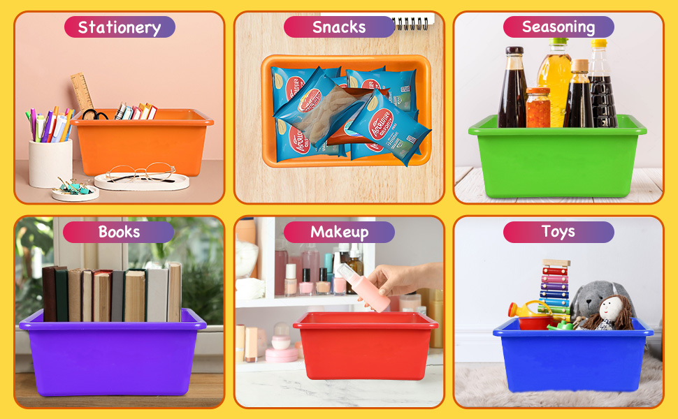 Versatile Application: Perfect for toy bins in kids' rooms, classroom organization, or colorful storage in any space. Enhance your storage options with our practical and engaging plastic cubby storage bins