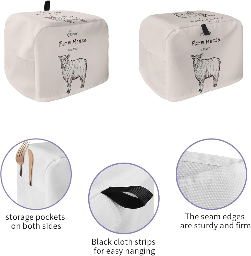 Toaster Dust Cover with Pockets, Farm House Alpaca American Rustic Style Beige Background Soft Washable 2 Slice Toaster Cover, Dust-proof Cover for Small Appliance Cover and Fingerprint Protection