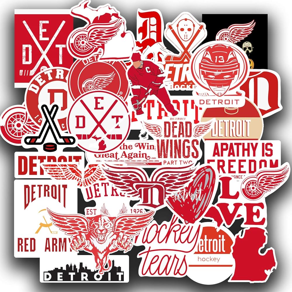 29 PCS Set of Detroit Vinyl Red Wings Stickers Pack Detroit Decal Red Wings 2-2.5 inches