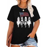 Plus Size USA Flag Shirt for Women 4th of July American Flag Print Tee Tops Short Sleeve Patriotic T-Shirt Blouse