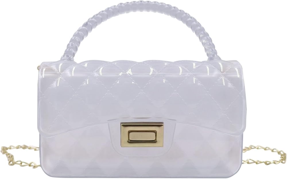 ZGMYC Fashion Candy Color Jelly Crossbody Bag for Women Girls Transparent Satchel Shoulder Handbag with Beaded Top Handle