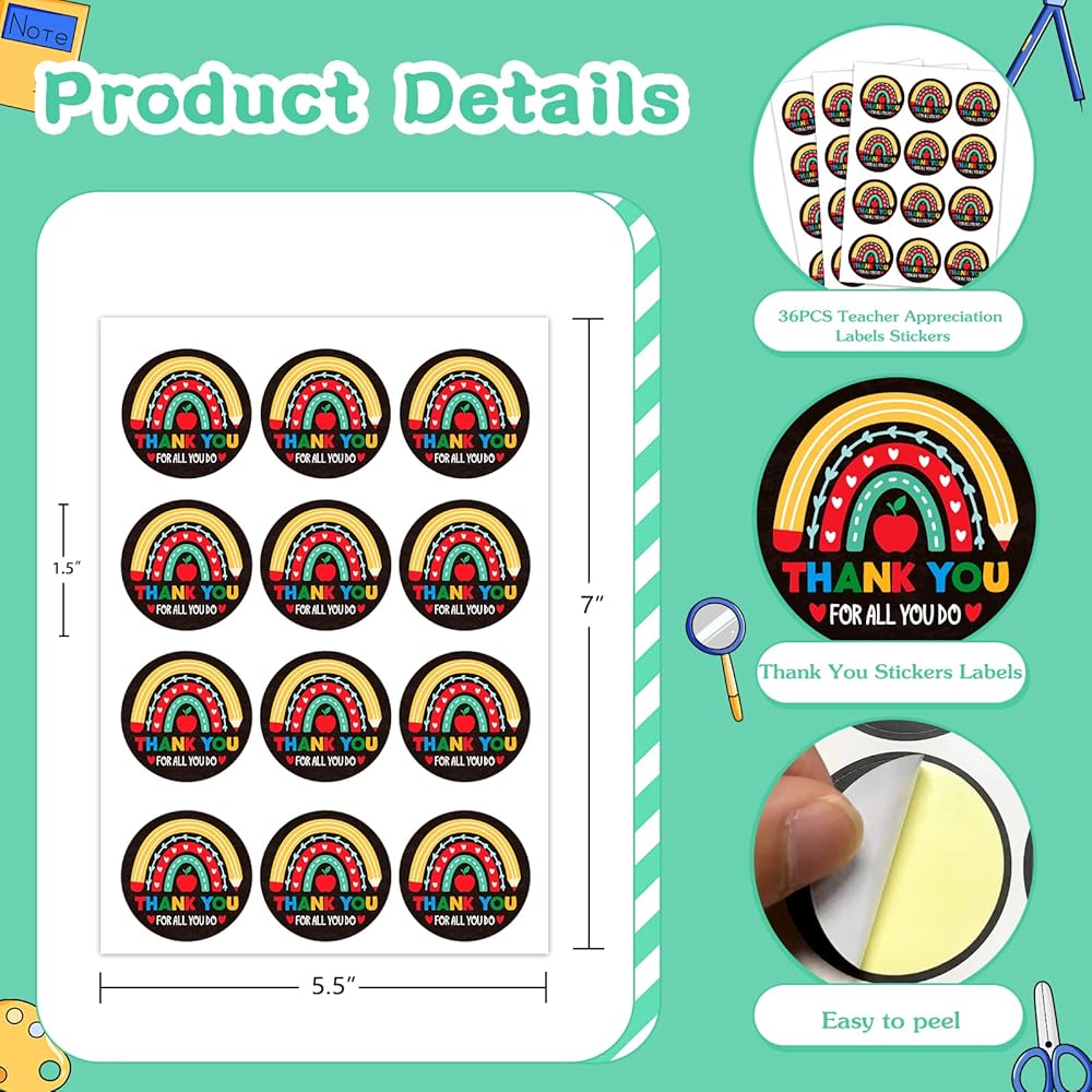 【Teacher Appreciation Gift Tag Stickers】: Teacher appreciation label stickers include 3 sheets in total of 36pcs thank you label stickers. Great teacher appreciation gift for graduation retirement party favors decorations.
