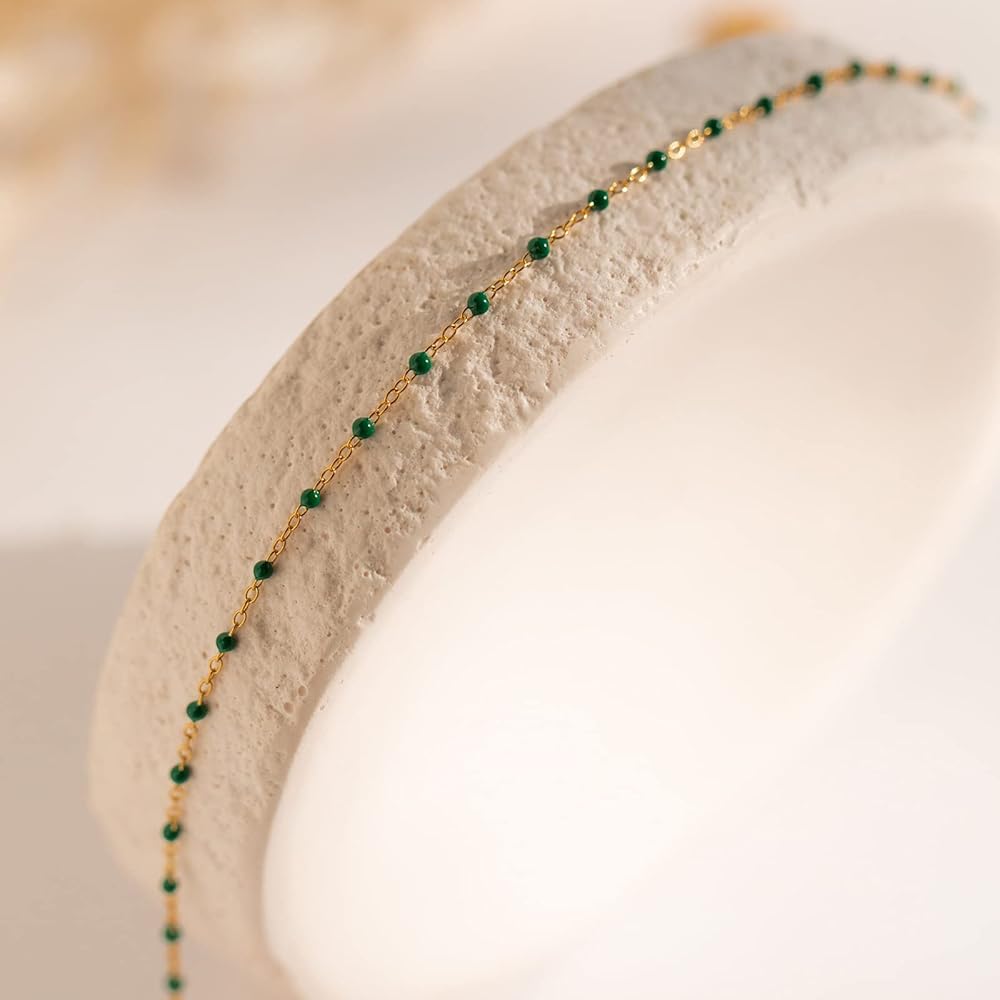 Materia: The chain is made of brass based plated with silver, and the colorful beads on the chain are made by hand DIY without any harmful materials.