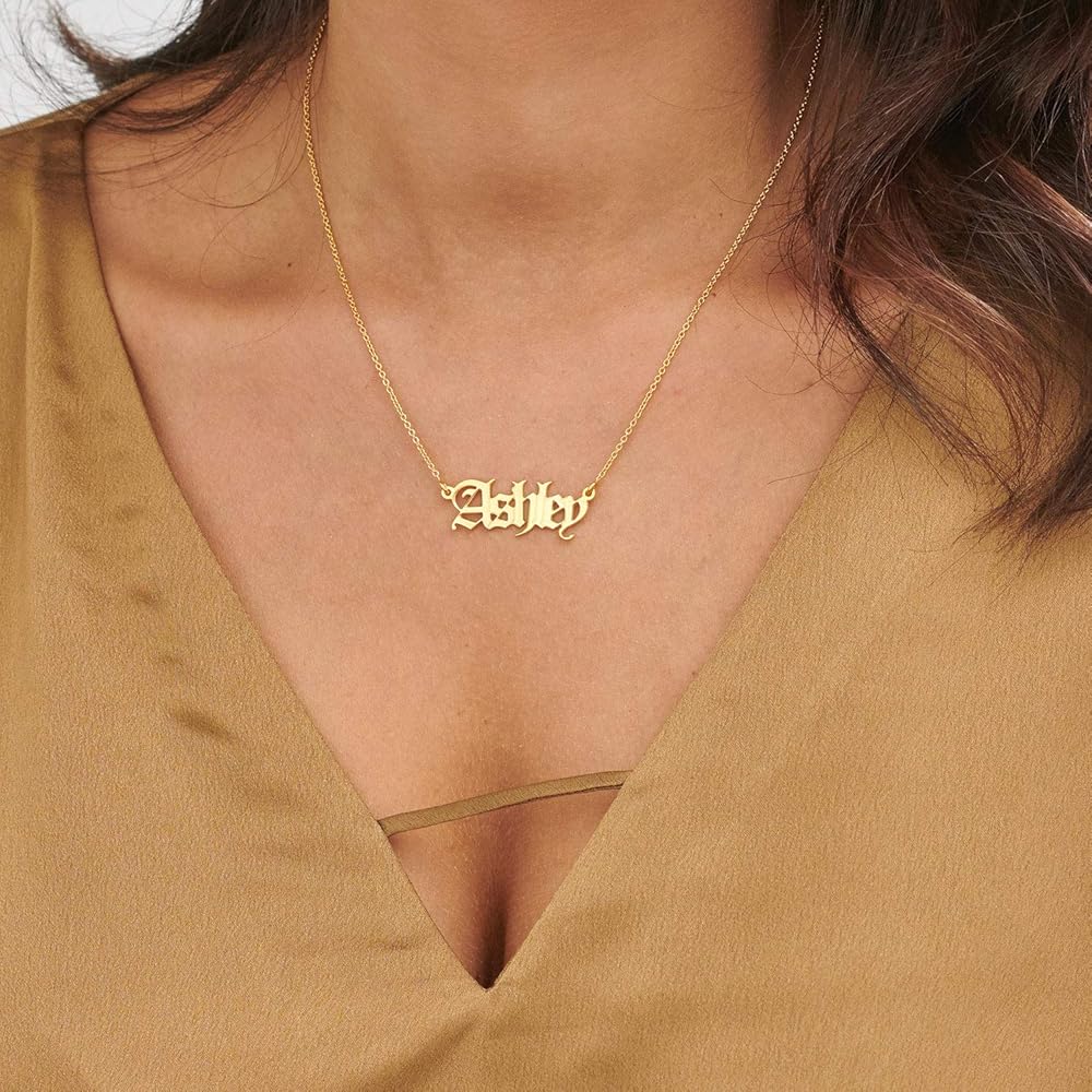 Style Up the original name necklace with our special Old English font Name Pendant Necklace name jewelry. PICK YOUR NAME & METAL TYPE- If you don't find the name on the list, you can click on CUSTOM YOUR OWN from the menu.