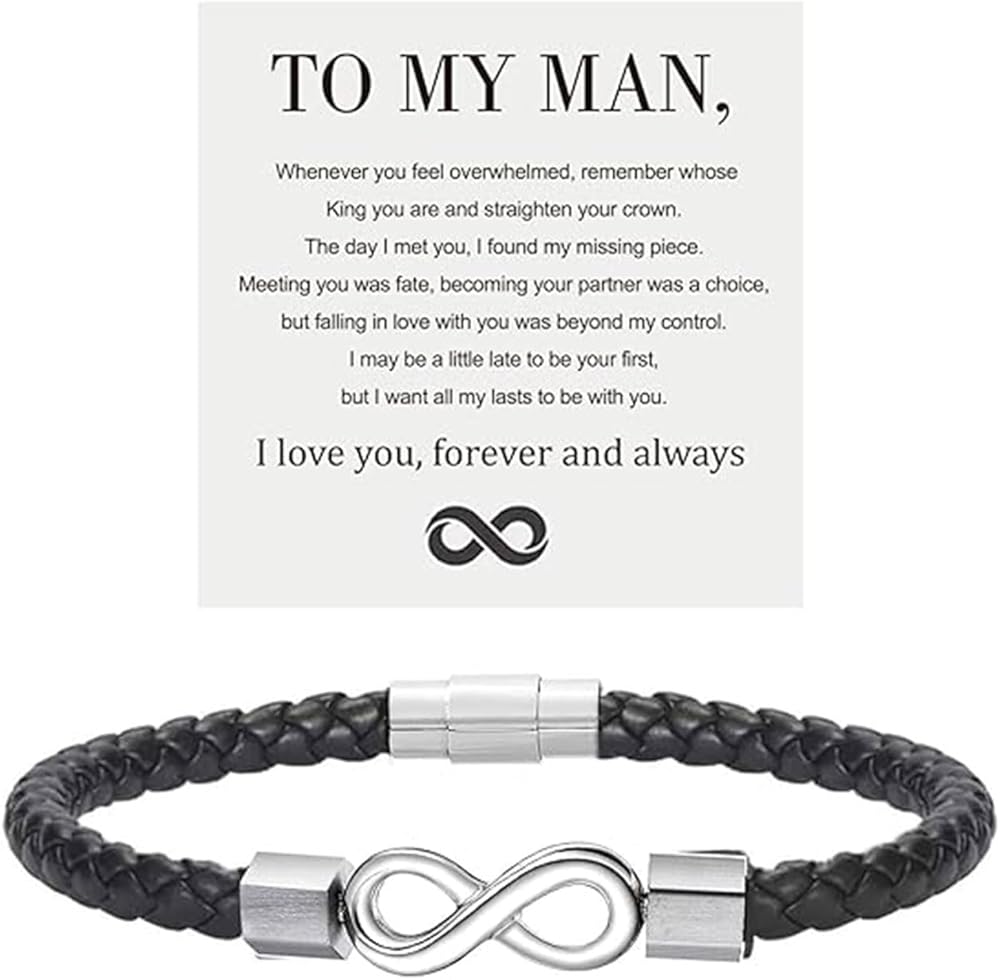To my man leather bracelet:Express your eternal love to your man with Forever and Always Bracelet.This romantic gift serves as a constant reminder of your love.