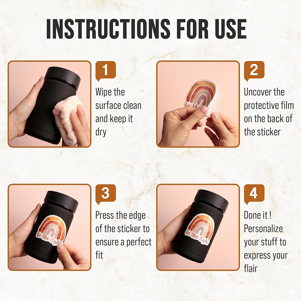 EASY TO USE: Remove the protective layer, keep your surface clean and dry, press to finish; Laptops, water bottles, skateboards, luggage, hydro flask, journals, cars and any smooth, flat surface is perfect for use sticker. It's easy to remove without a trace.