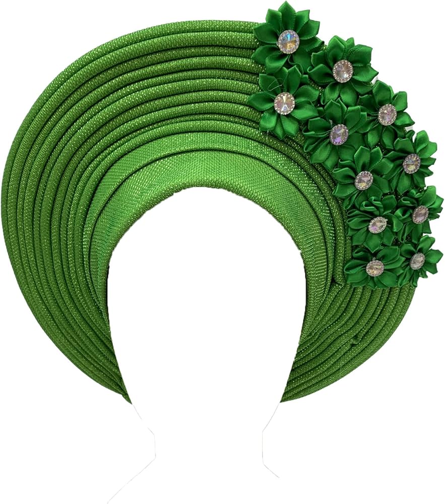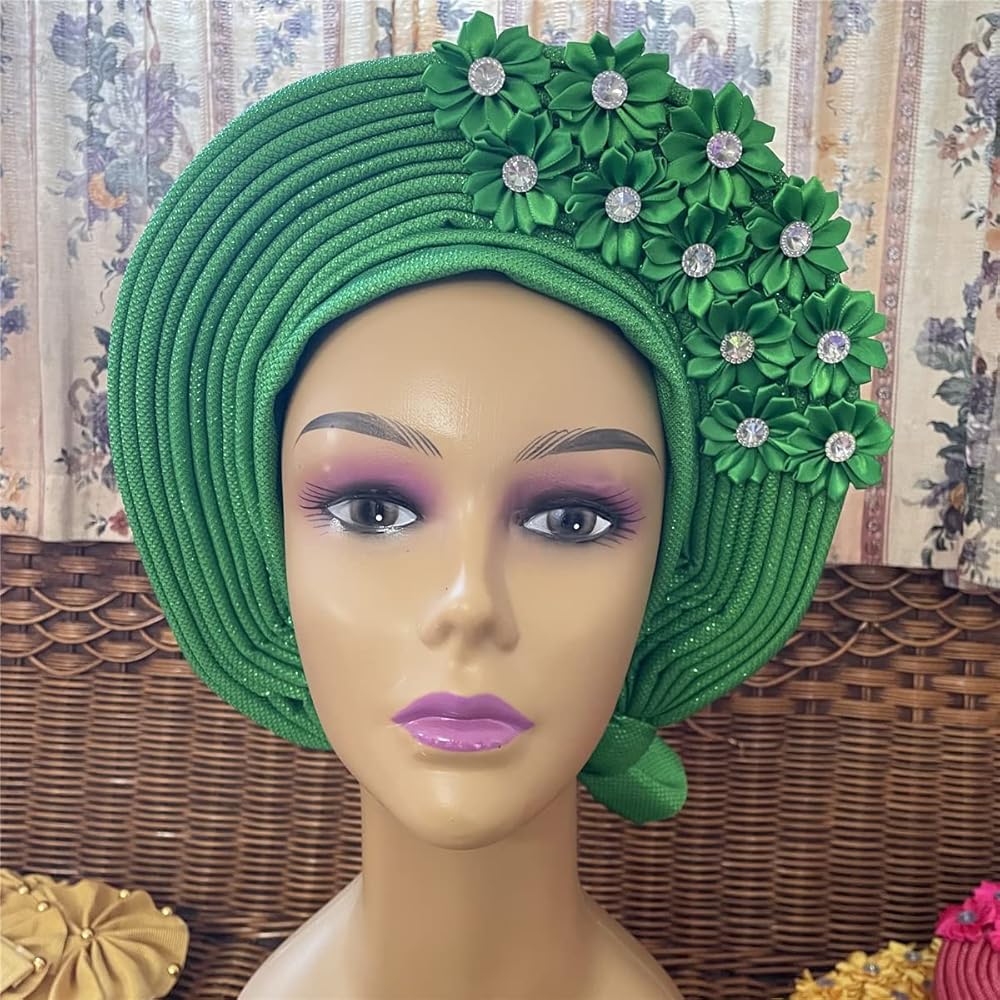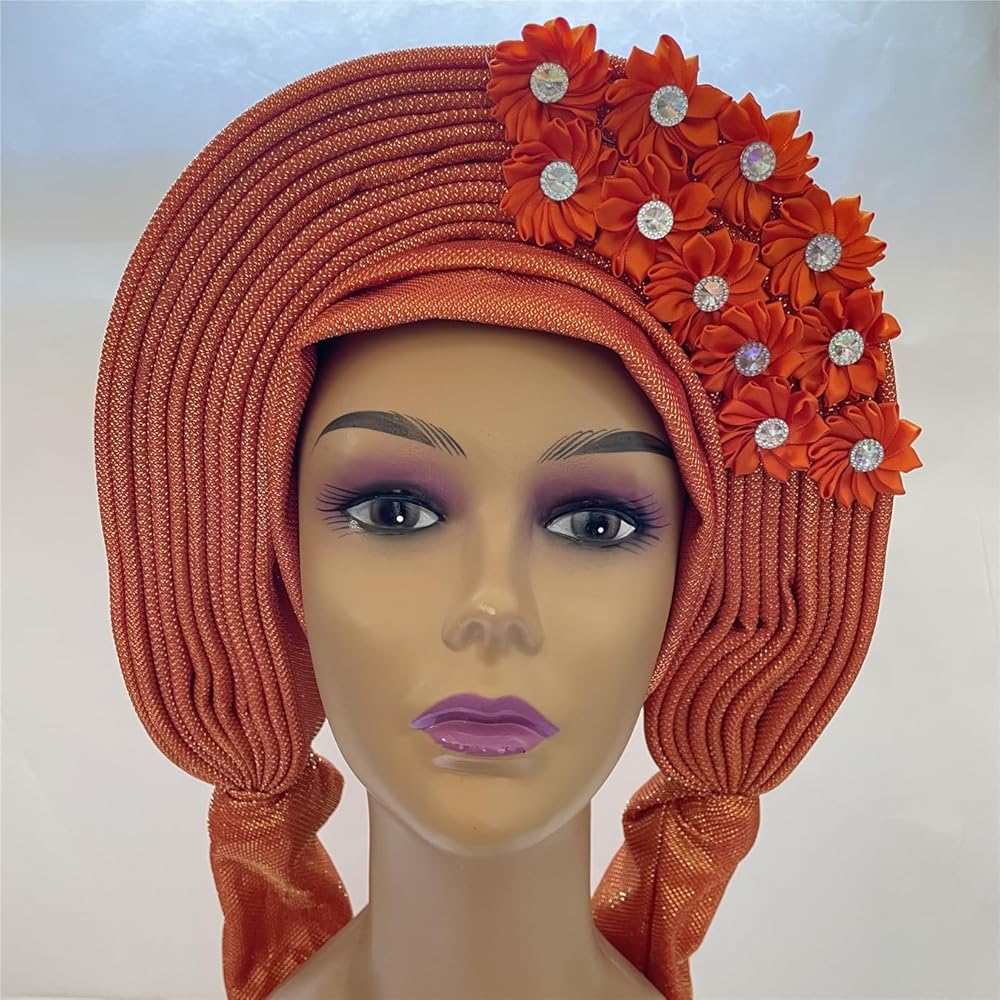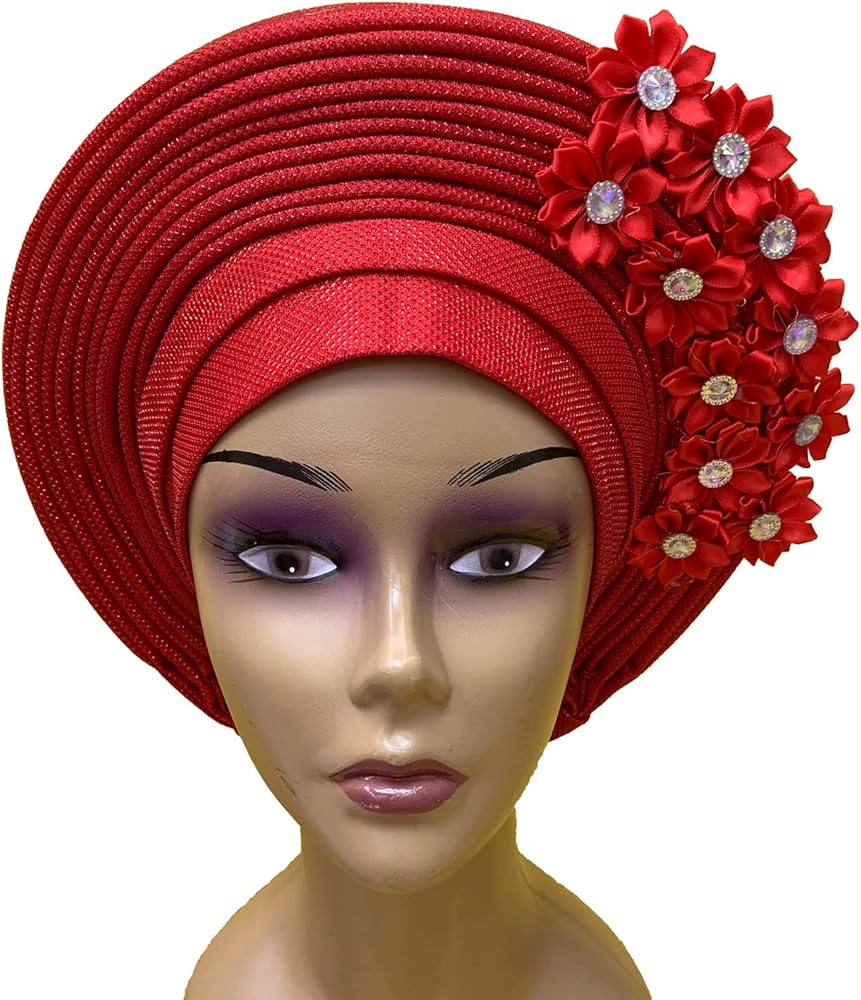 Nigerian Headwrap Features :High Quality Beautiful And Ingenious Design Women Turban African Head Wrap Hair Accessory With Flower &Stones Embellishments Perfect For Every Occasion Such As Weddings, Parties, Church Activities, Engagement Parties.