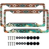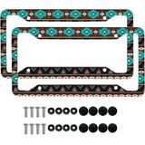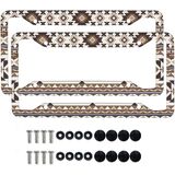Aztec Navajo Native American Aluminum Car Licenses Plate Frame Tag for Women Men Black White Southwest Print Novelty Metal Automotive License Plate Cover