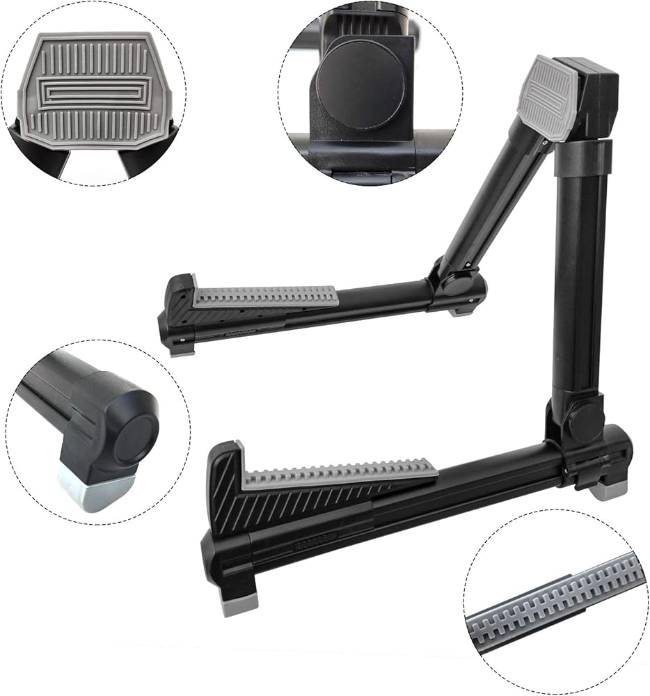 Safe -- Anti-skid silicone floor feets and all contact points of the stand Features secure lock system and non-slip rubber feet, without sliding or tipping