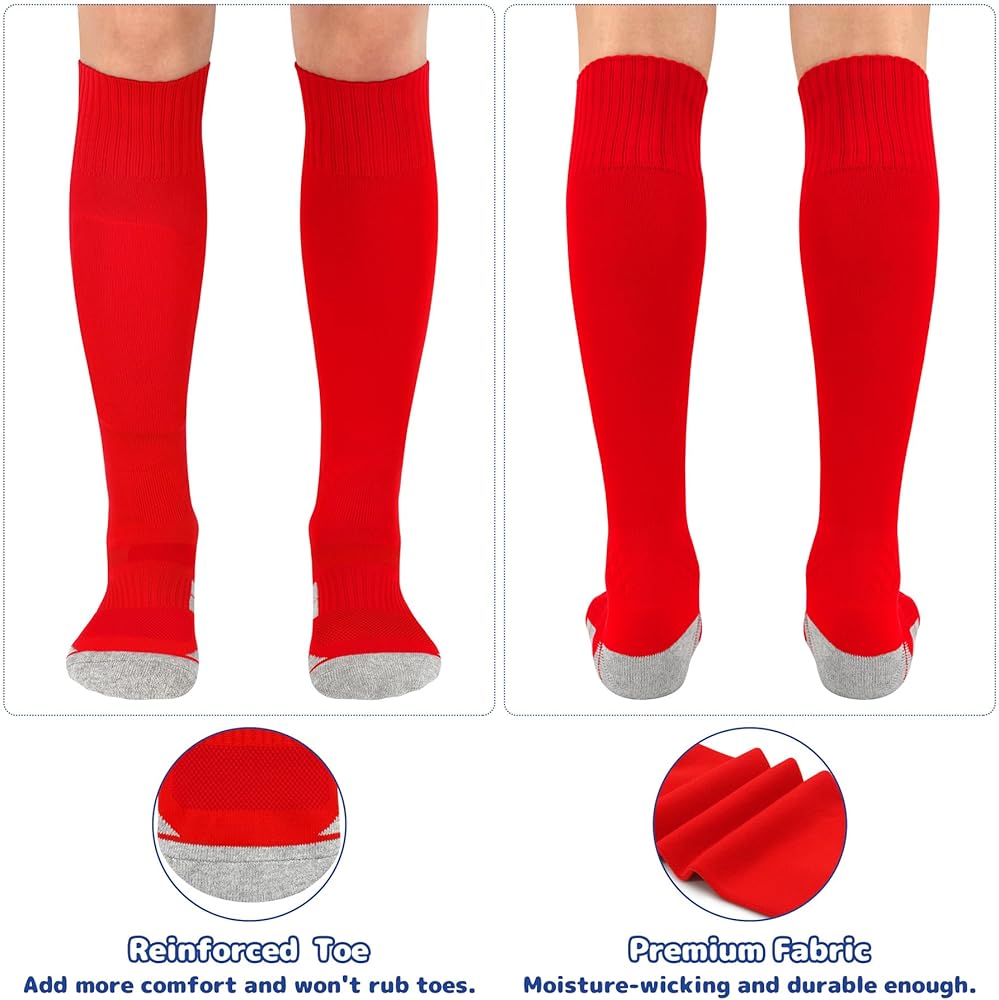 PERFECT FOR VARIOUS SPORTS: Our boys soccer socks and girls soccer socks are definitely must-have accessories for various team sports! They are not only perfectly suitable for playing soccer, football, baseball and softball games, but also wonderful for rugby, hockey, basketball, lacrosse, tennis, gym, and other athletic activities. Designed with vibrant colors, these mens soccer socks can easily match with daily sportswear and shin guards, therefore, add more vitality to your sports moments!