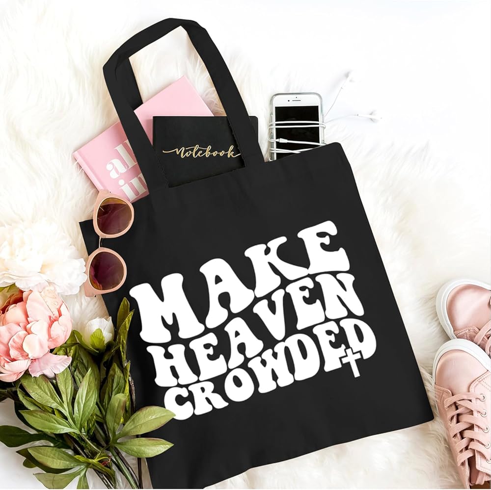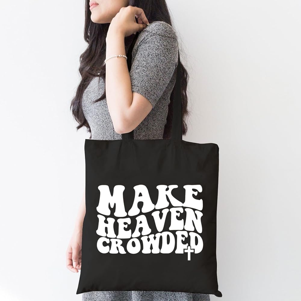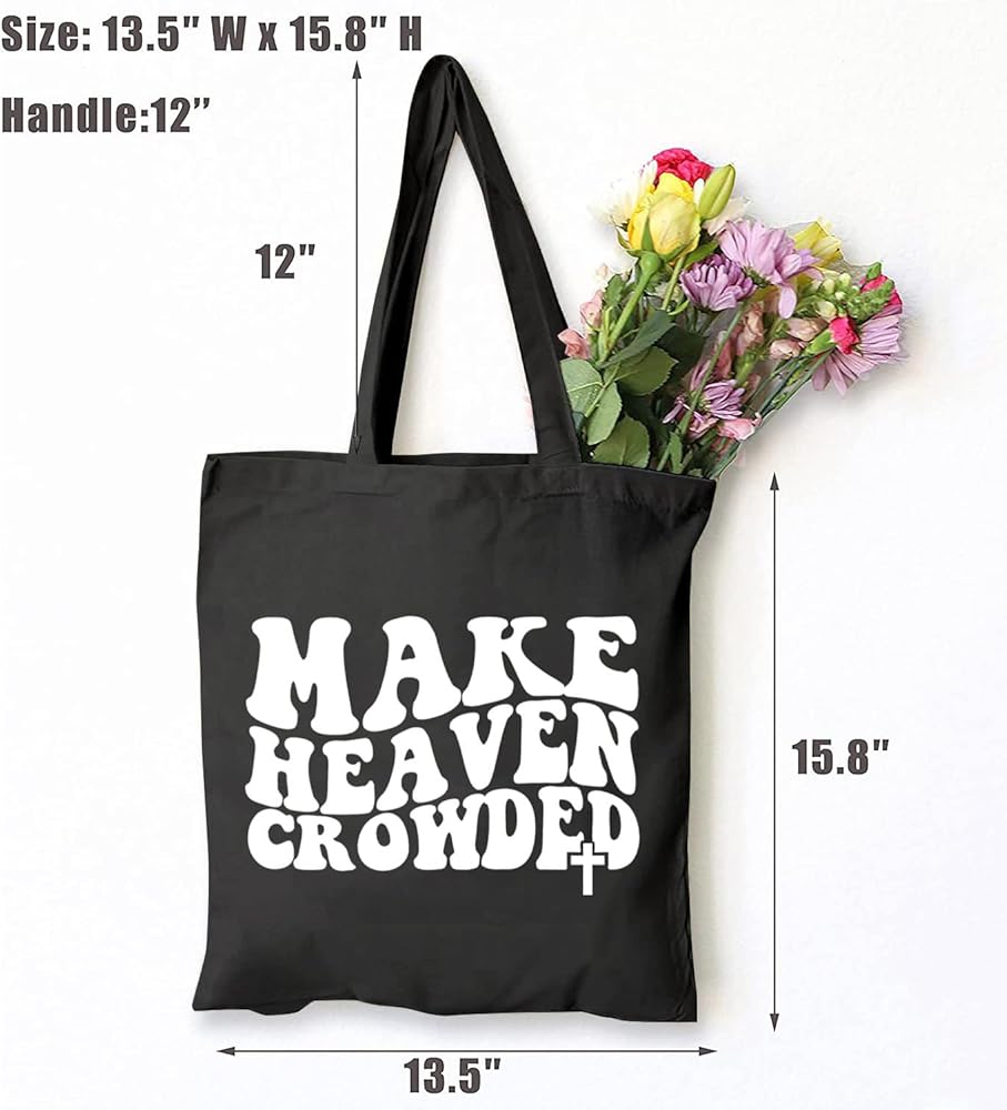 Make Heaven Crowded Bible Verse Canvas Tote Bag Women Aesthetic Christian Religious Shopping Bag Funny Gifts