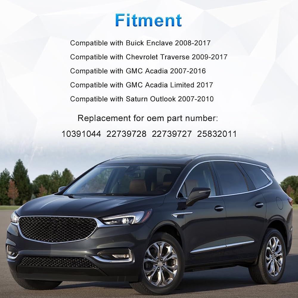Fitment: Compatible with Chevy Traverse 2009 to 2017, compatible with GMC Acadia 2007 to 2016, compatible with Buick Enclave 2008 to 2017, compatible with Saturn Outlook 2007 to 2010. For more specific and detailed model matching, please refer to the details
