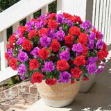 UV and All Weather Resistant: High quality silk material. Resistant to UV rays and fading, The artificial outdoor flowers effortlessly withstand various weather conditions, ensuring long-lasting beauty. With no watering required, the hanging planter maintain their fullness and captivating appearance throughout the entire season.