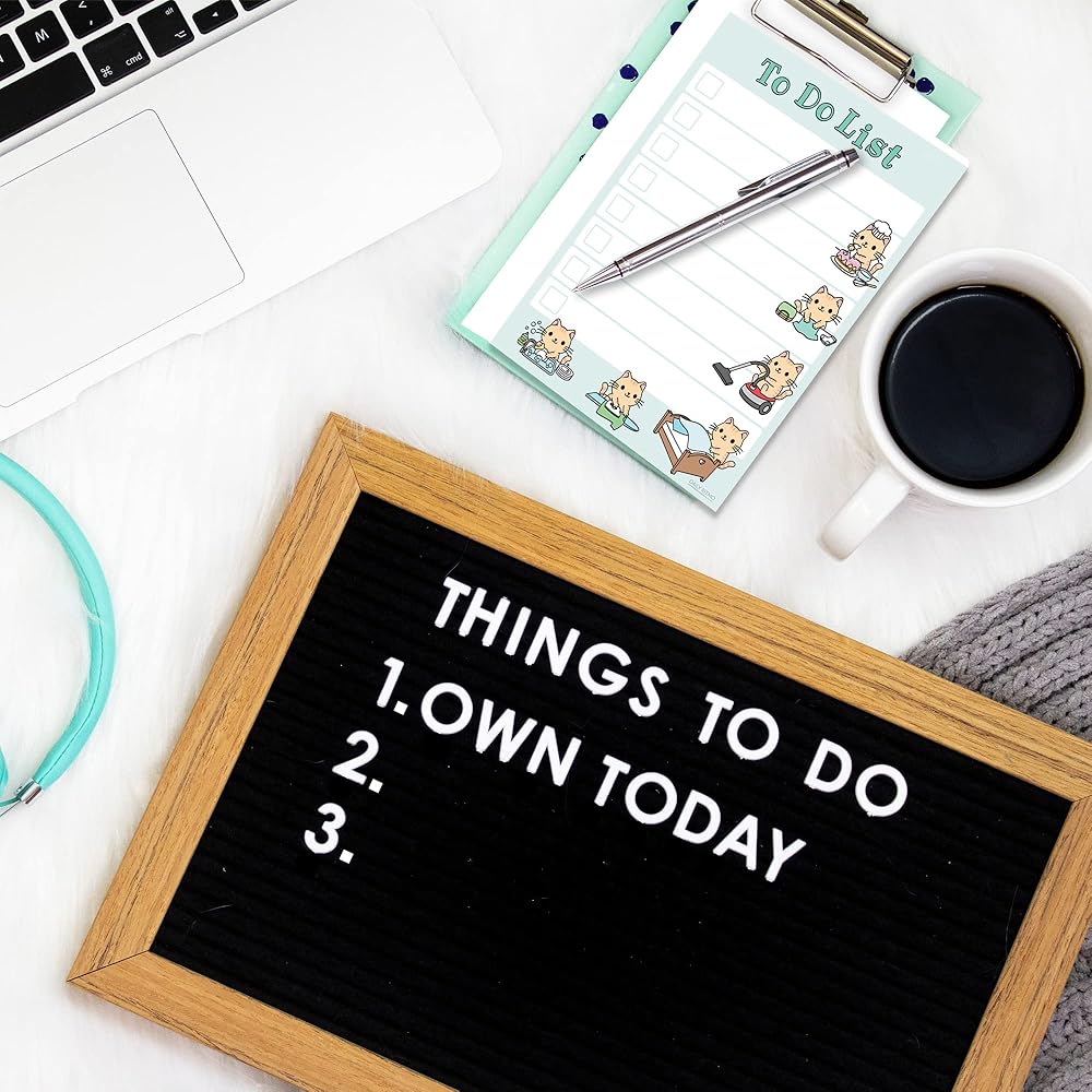 Do these things for your cat's benefit. This daily planner holds you accountable to your cat and prioritizes your tasks to satisfy its needs. The notepad thin and about a size of a large cell phone. Measurements are 4x6” with 50 pages.