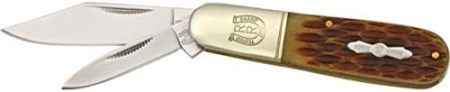Amber jigged bone handles. 3 3/8" closed. Stainless clip and pen blades. Nickel silver bolster and inlay shield.