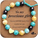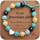 🌸[Unique Design]The order of the various colored clay beads is different for each bracelet, which means that each bracelet is unique. The golden heart-shaped bead in the middle symbolizes "sisters will always be connected by heart". A perfect gift for big sister, she will definitely love it!