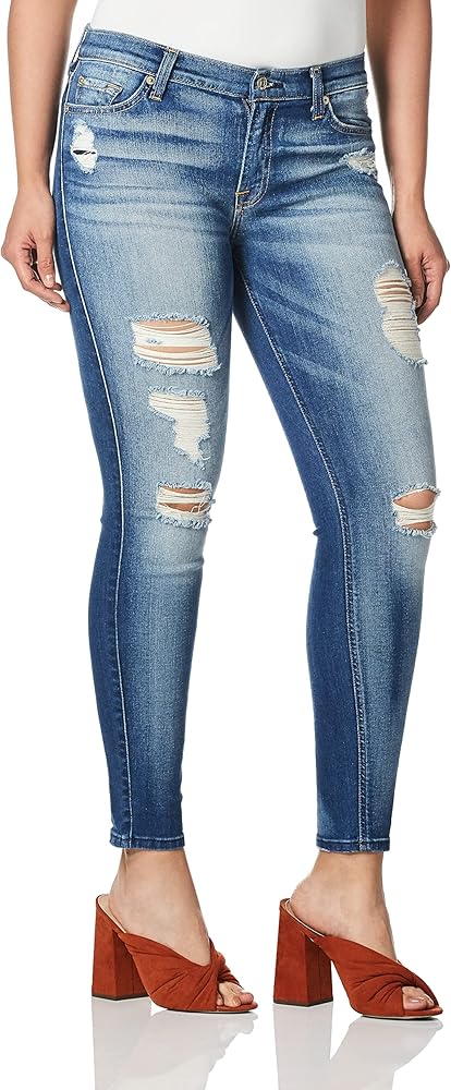 7 for All Mankind Women's Mid Rise Skinny Fit Ankle Jeans