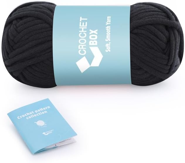 Crochet Box Yarn for Crocheting: 1 PCS Black Yarn for Beginners, Cotton Nylon Blend, Easy to See Stitch, Include Patterns, Enrich Leisure Time, Create Flower, Bag, Hat, Doll, Keychain(50g, 55 yds)