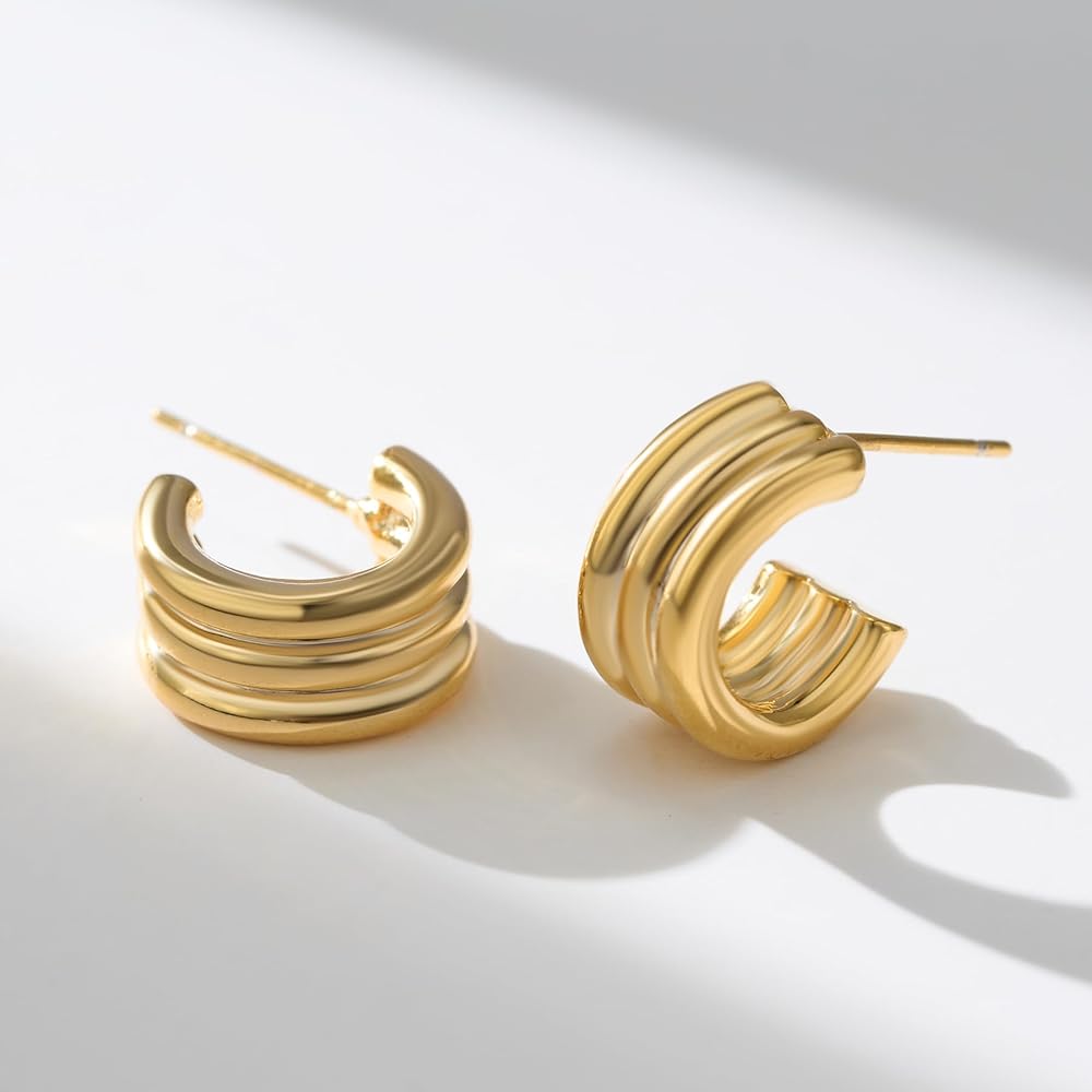 SWEETV Chunky Gold Earrings for Women 14K Plated Gold Statement Earrings Small Gold/Silver Hoop Earrings Trendy Open Hoop Earrings for Women Tiny Huggie Hoop for Adult