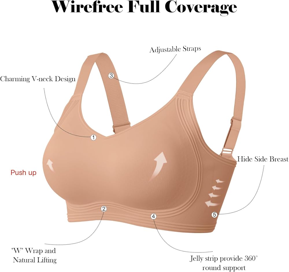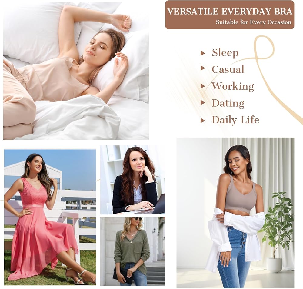 【Seamless Bras for Everyday Wear】This womens full coverage bra ensure invisibility under clothing, giving you the freedom to mix and match with different styles. This bra can wear as sleep bras,yoga bras,lounge bra,skims duped bra,mastectomy bra, everyday bra, t-shirt bras and low impact sports bras or working out bras.