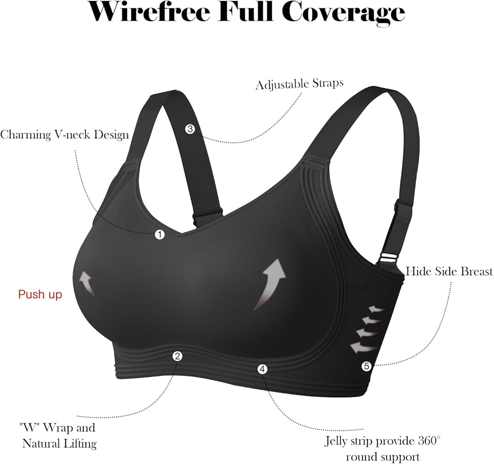 【Adjustable Straps】This V neck bralette with fully adjustable shoulder straps and back clasps, allowing you to customize the fit to a comfortable position while ensuring the bra stays securely in place without any worry of slippage.The 4-row back hooks are designed to reduce the appearance of back fat and provide additional support, ensuring a smooth and flattering silhouette. The widened shoulder straps offer effective support and help alleviate any strain on your shoulders.