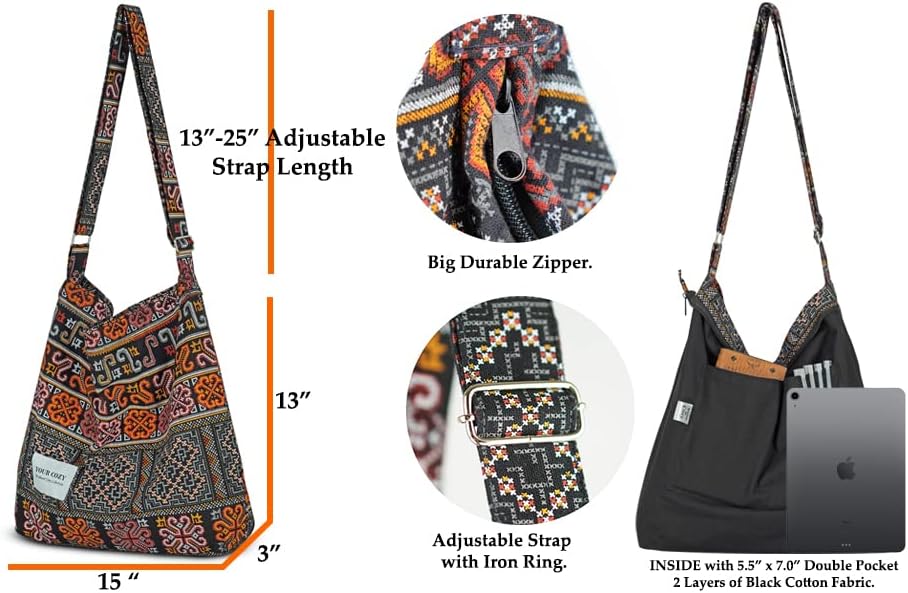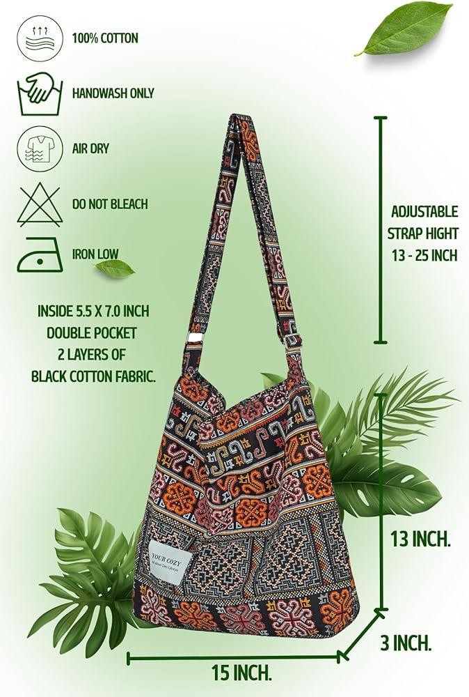 Material: This shoulder bag is made of soft Cotton, very light and durable for daily use.