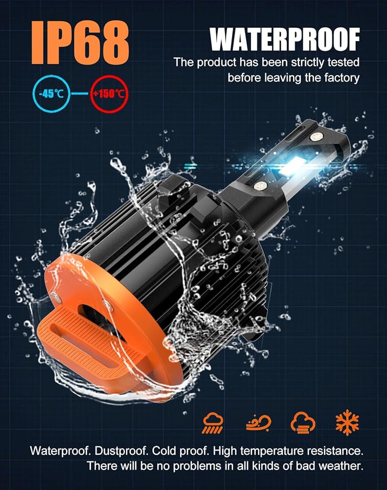☀Protective Design. IP68 level.☀ Our LED H15 is Waterproof. Dustproof. Cold proof. High temperature resistance. IP68 protection level. There will be no problems in all kinds of bad weather.