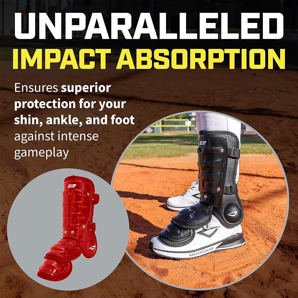 3N2 Pro Clutch Batters Leg Guard – Reversible for Switch Hitters| Baseball & Softball Shin, Ankle & Foot Protection | Adjustable Fit + Quick-Release Buckles - Ambidextrous
