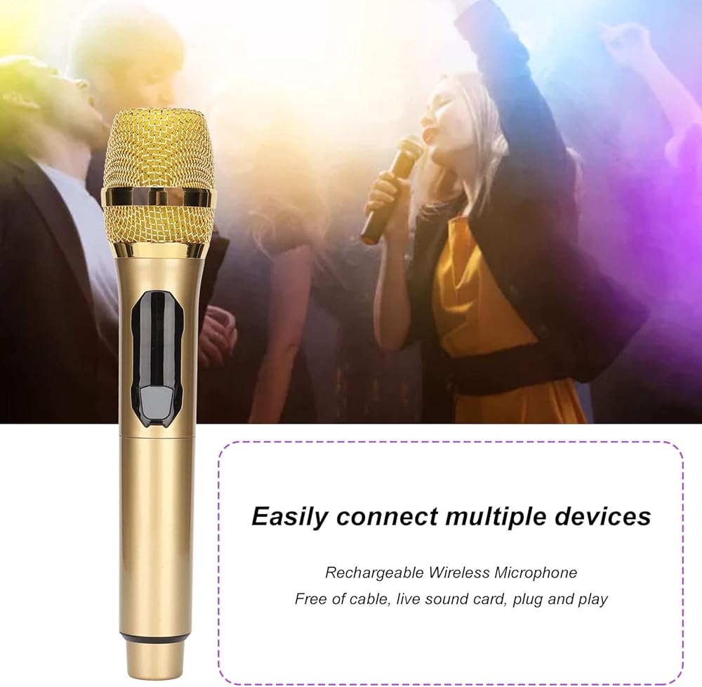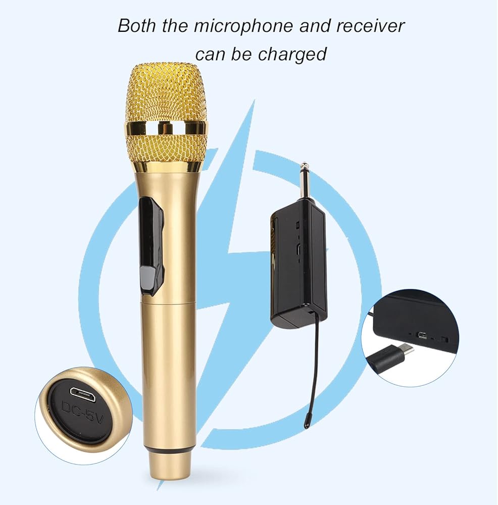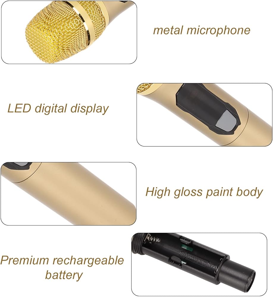 Diyeeni Handheld Karaoke Mic, Microphone System with Rechargeable Receiver, Portable Dynamic Microphone with LED Display, for Singing Stage Wedding Speech (Gold)