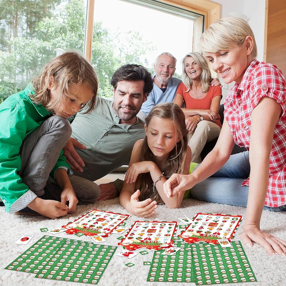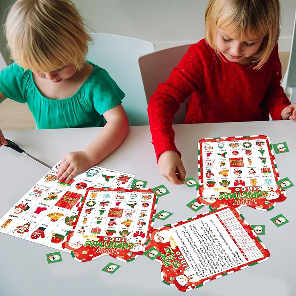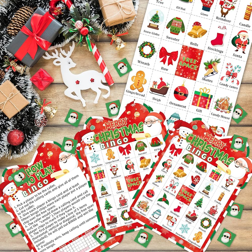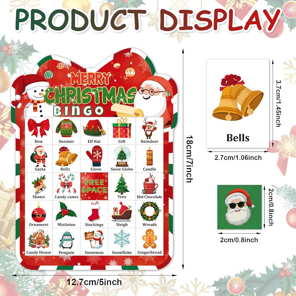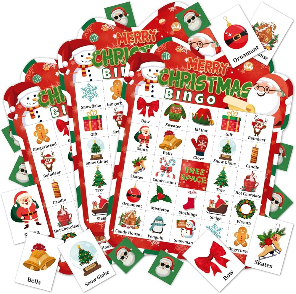 Christmas Bingo Cards Game Set - Xmas Festive Holiday Party Supplies for Kids and Adults, 24 Players, Merry Christmas Themed Bingo Cards for School Classroom, Family Activities, Seasonal Party Favors