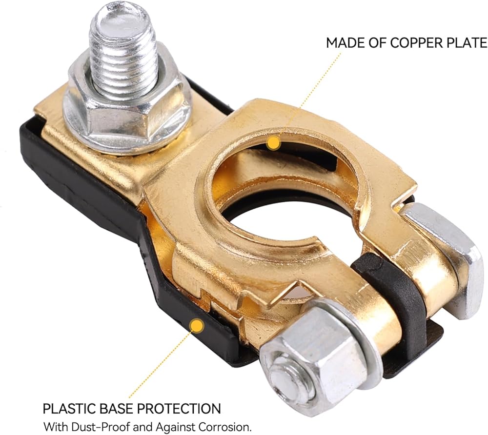• 【Quality Material】 the battery terminal with a plastic cover is made of quality copper, and has galvanized surface, which is rust-proof and durable.